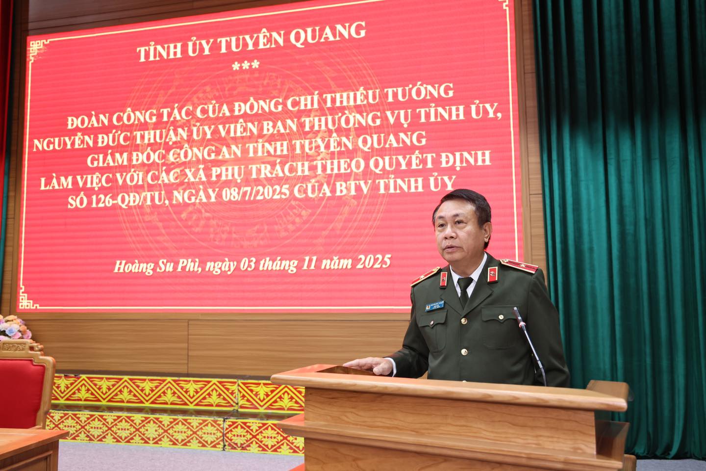 GIÁM ĐỐC CÔNG AN TỈNH LÀM VIỆC VỚI CÁC XÃ PHỤ TRÁCH THEO QUYẾT ĐỊNH SỐ 126-QĐ/TU CỦA BAN THƯỜNG VỤ TỈNH UỶ