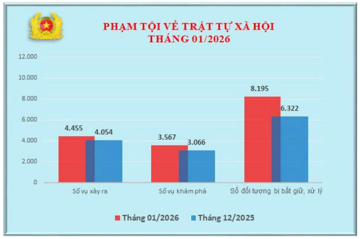 SỐ LIỆU VỀ CÔNG TÁC ĐẤU TRANH PHÒNG, CHỐNG TỘI PHẠM THÁNG 01/2026