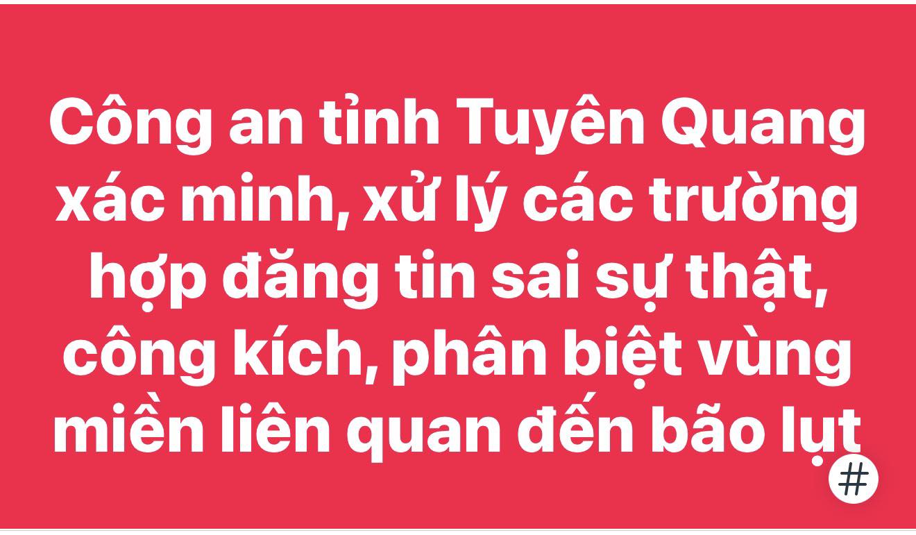CÔNG AN TỈNH TUYÊN QUANG XÁC MINH, XỬ LÝ CÁC TRƯỜNG HỢP ĐĂNG TIN SAI SỰ THẬT CÔNG KÍCH, PHÂN BIỆT VÙNG MIỀN LIÊN QUAN ĐẾN BÃO LŨ