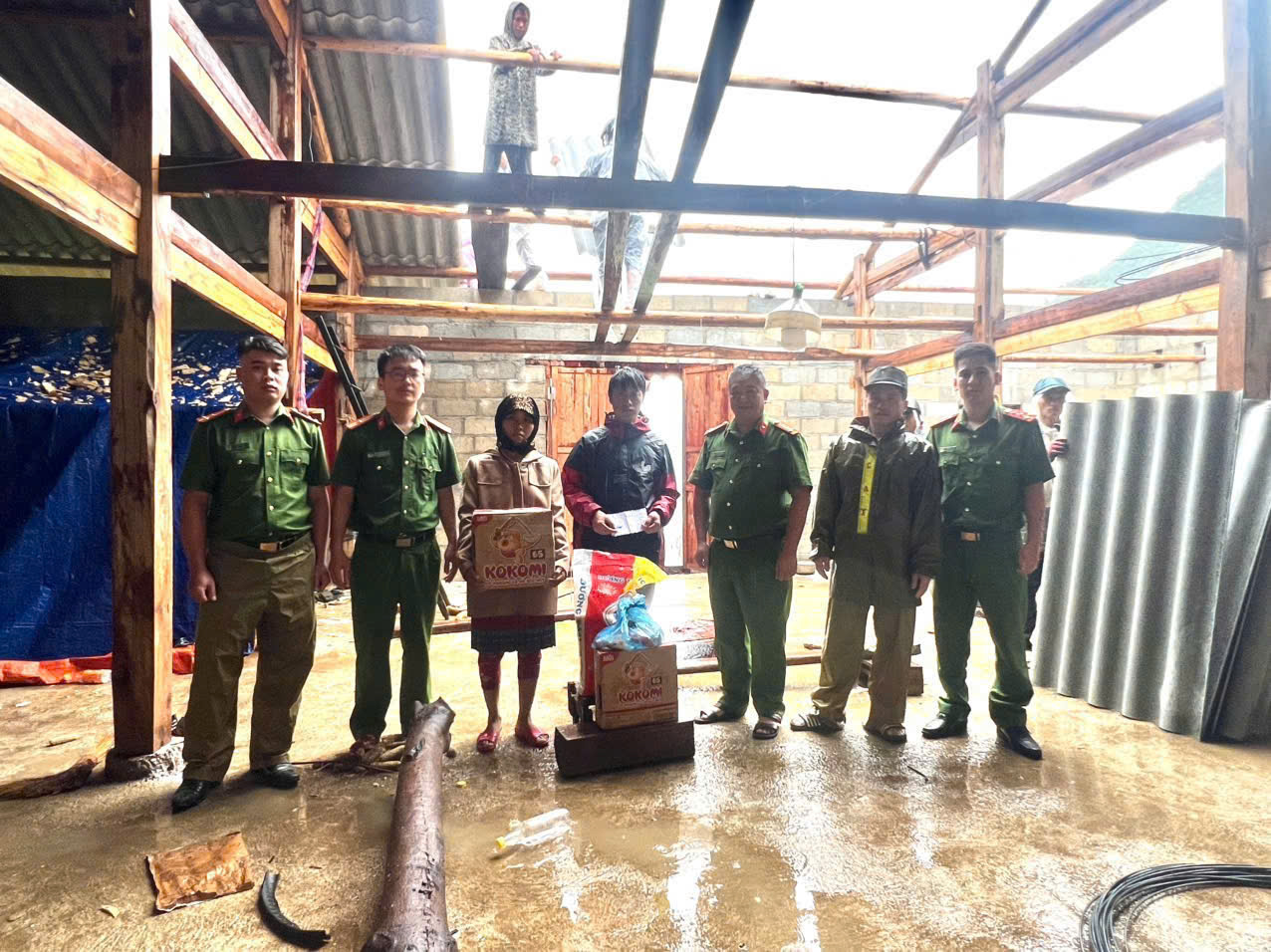 Chiều ngày 6/10/2025, mặc dù điều kiện thời tiết không thuận lợi, có mưa giông nhưng cán bộ, chiến sĩ Công an xã Khâu Vai, tỉnh Tuyên Quang đã triển khai lực lượng, kịp thời hỗ trợ người dân khắc phục thiệt hại do cơn bão số 10 gây ra.