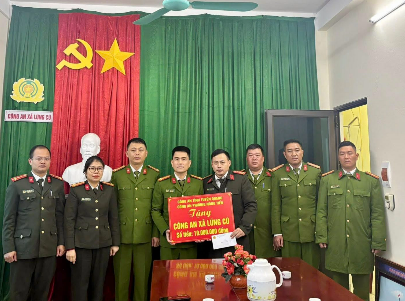 Hướng tới kỷ niệm 80 năm Ngày truyền thống lực lượng Tham mưu Công an nhân dân (18/4/1946 - 18/4/2026); kế hoạch Tổ chức Chương trình tình nguyện mùa đông năm 2025 - Xuân tình nguyện năm 2026 gắn với phong trào “Toàn dân bảo vệ an ninh Tổ quốc từ cơ sở”; vừa qua, Công an phường Nông Tiến phối hợp với một số doanh nghiệp, nhà hảo tâm trên địa bàn phường tổ chức hoạt động thăm hỏi, tặng quà tại xã Lũng Cú, tỉnh Tuyên Quang.