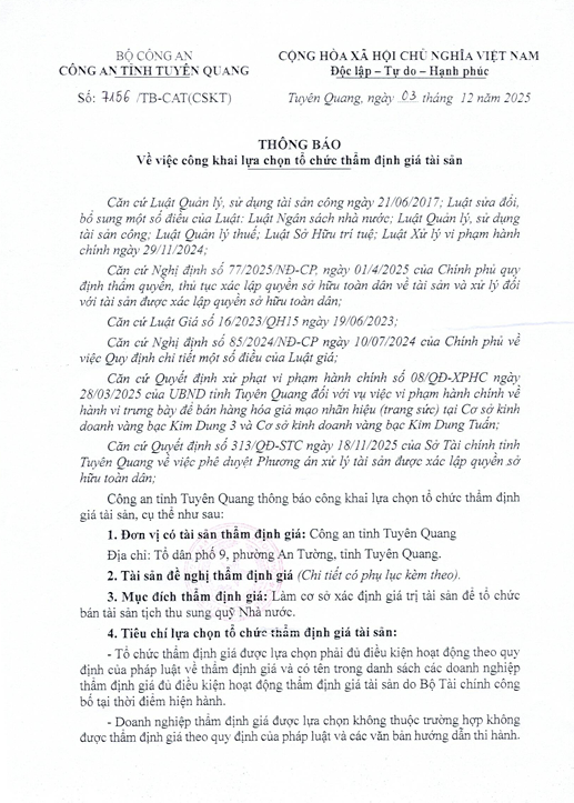 Cơ quan Cảnh sát điều tra Công an tỉnh Tuyên Quang đang giải quyết tin báo về tội phạm chết người chưa rõ nguyên nhân phát hiện ngày 01/10/2025 tại thôn Soi Thành, xã Phù Lưu, tỉnh Tuyên Quang.