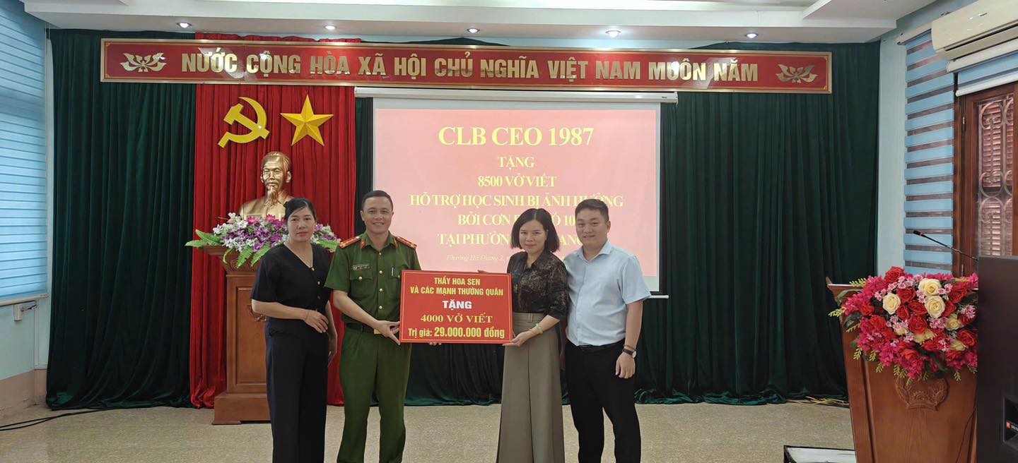 Trước đó, Phòng Cảnh sát quản lý hành chính về trật tự xã hội Công an tỉnh đã kết nối các mạnh thường quân, huy động sự đóng góp của các nhà hảo tâm, tổ chức trao tặng nhiều phần quà thiết yếu gồm: 5.000 vở viết, 1 tấn gạo, 100 chiếc chiếu, 100 chiếc gối, 700 lọ thuốc vitamin D, 50 áo ấm, vật dụng thiết yếu... tặng cho các em học sinh tại các trường học trên địa bàn phường Hà Giang 2 và xã Thuận Hoà. Tổng trị giá các phần quà gần 100 triệu đồng.