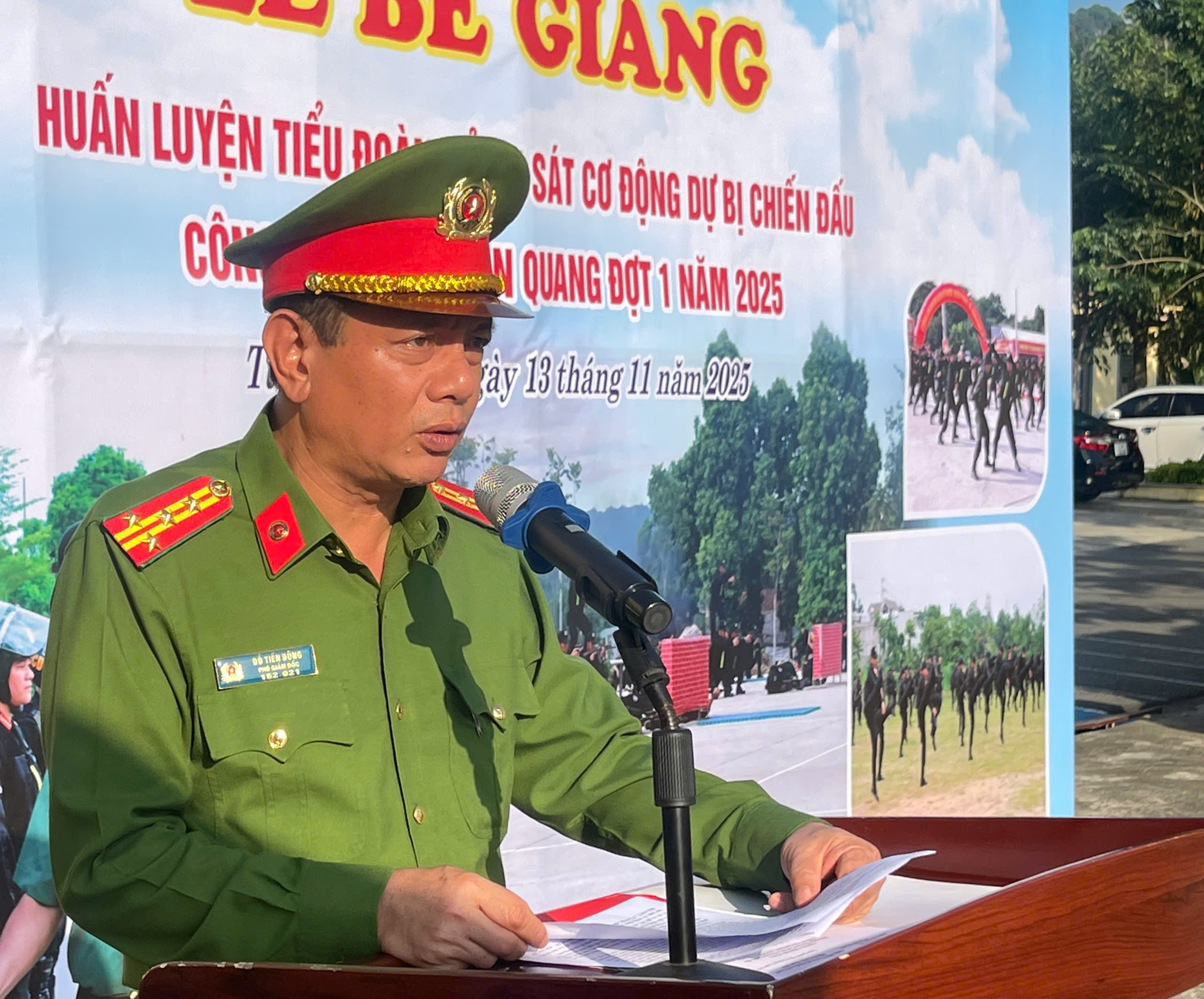 Phát biểu tại buổi lễ, Đại tá Đỗ Tiến Dũng ghi nhận, biểu dương tinh thần trách nhiệm và những nỗ lực của Tổ huấn luyện, cùng toàn thể học viên trong suốt quá trình học tập, rèn luyện. Đồng chí đề nghị Ban Chỉ huy tiểu đoàn chủ động phối hợp với các đơn vị liên quan chuẩn bị lực lượng, trang thiết bị, phương tiện tại chỗ, phát huy hiệu quả hoạt động của Tiểu đoàn Cảnh sát cơ động dự bị chiến đấu trong triển khai phương án, cơ động, vũ trang chiến đấu để ngăn chặn, tấn áp kịp thời các vụ gây rối....các học viên cần tiếp tục phát huy kết quả đạt được, linh hoạt vận dụng kiến thức, kỹ năng đã được trang bị vào thực tiễn công tác, đồng thời luôn giữ vững tinh thần cảnh giác, sẵn sàng ứng phó hiệu quả với mọi tình huống phát sinh liên quan đến an ninh, trật tự tại cơ sở.