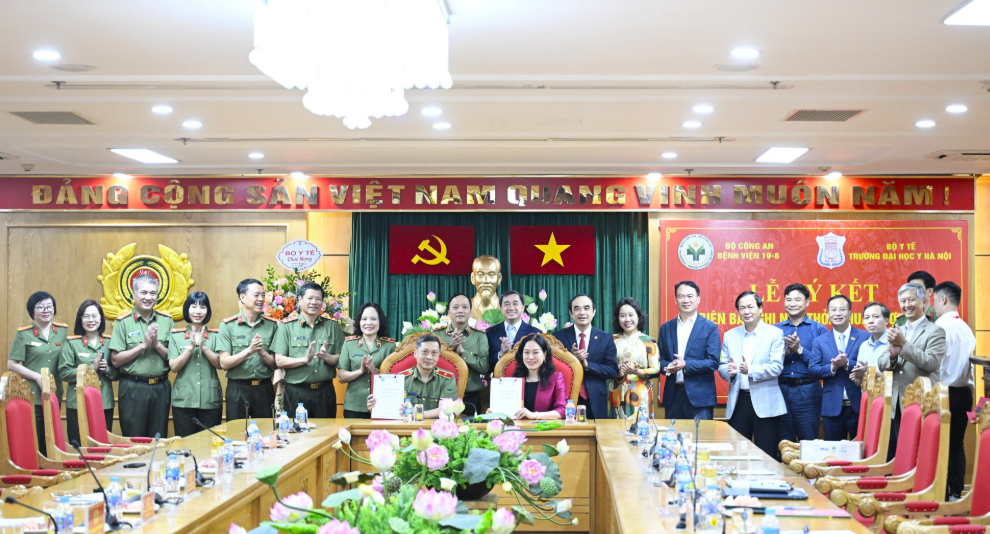 Tại buổi Lễ, đại diện lãnh đạo của Bệnh viện 19-8 và trường Đại học Y Hà Nội đã ký kết biên bản thỏa thuận hợp tác và Hợp đồng nguyên tắc đào tạo thực hành giữa Trường Đại học Y Hà Nội và Bệnh viện 19-8, Bộ Công an.