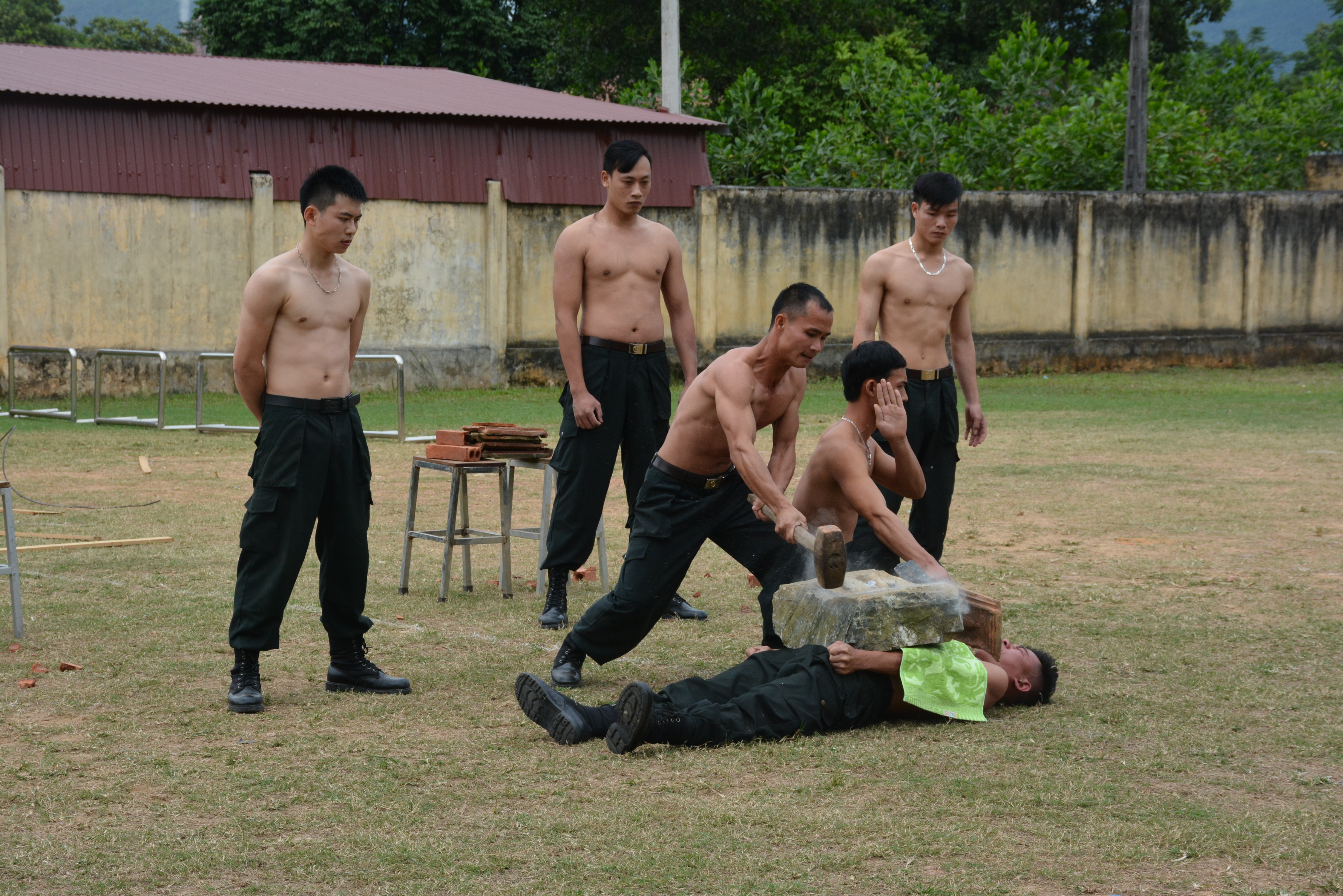 Cảnh sát cơ động Công an tỉnh luyện tập khí công nâng cao trình độ võ thuật, thể lực, sức bền thể chất đáp ứng yêu cầu trong chiến đấu.