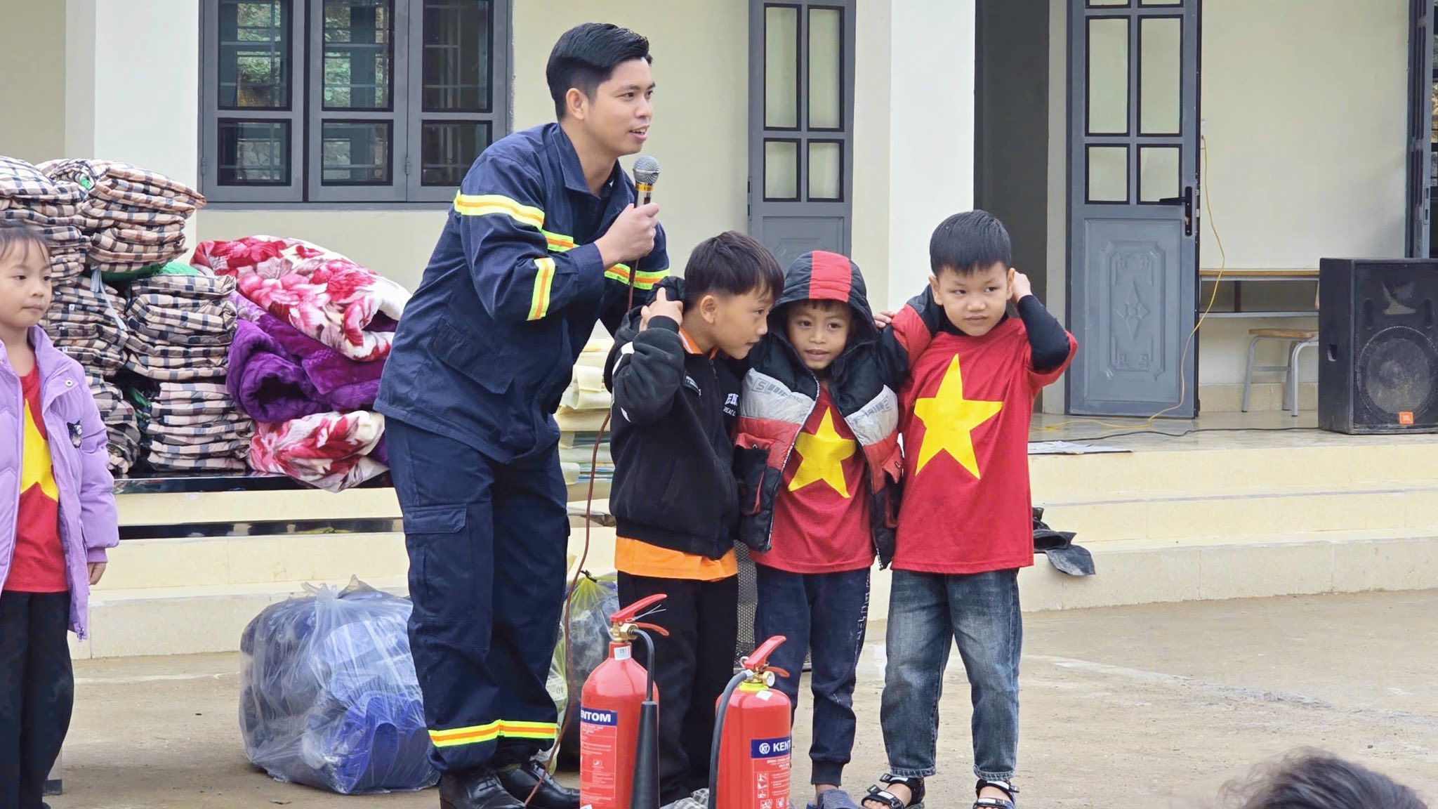 Bên cạnh hoạt động hỗ trợ vật chất, Chi đoàn Phòng Cảnh sát PCCC và CNCH còn tổ chức tuyên truyền kiến thức, kỹ năng về phòng cháy chữa cháy và cứu nạn cứu hộ cho giáo viên và học sinh. Nội dung tập trung vào những kỹ năng thiết thực như cách xử lý khi xảy ra cháy nổ, thoát nạn an toàn, sử dụng phương tiện chữa cháy ban đầu và kỹ năng tự bảo vệ bản thân. Hoạt động đã thu hút sự tham gia hào hứng của các em học sinh, góp phần nâng cao ý thức và kỹ năng xử lý các tình huống trước các nguy cơ cháy, nổ.