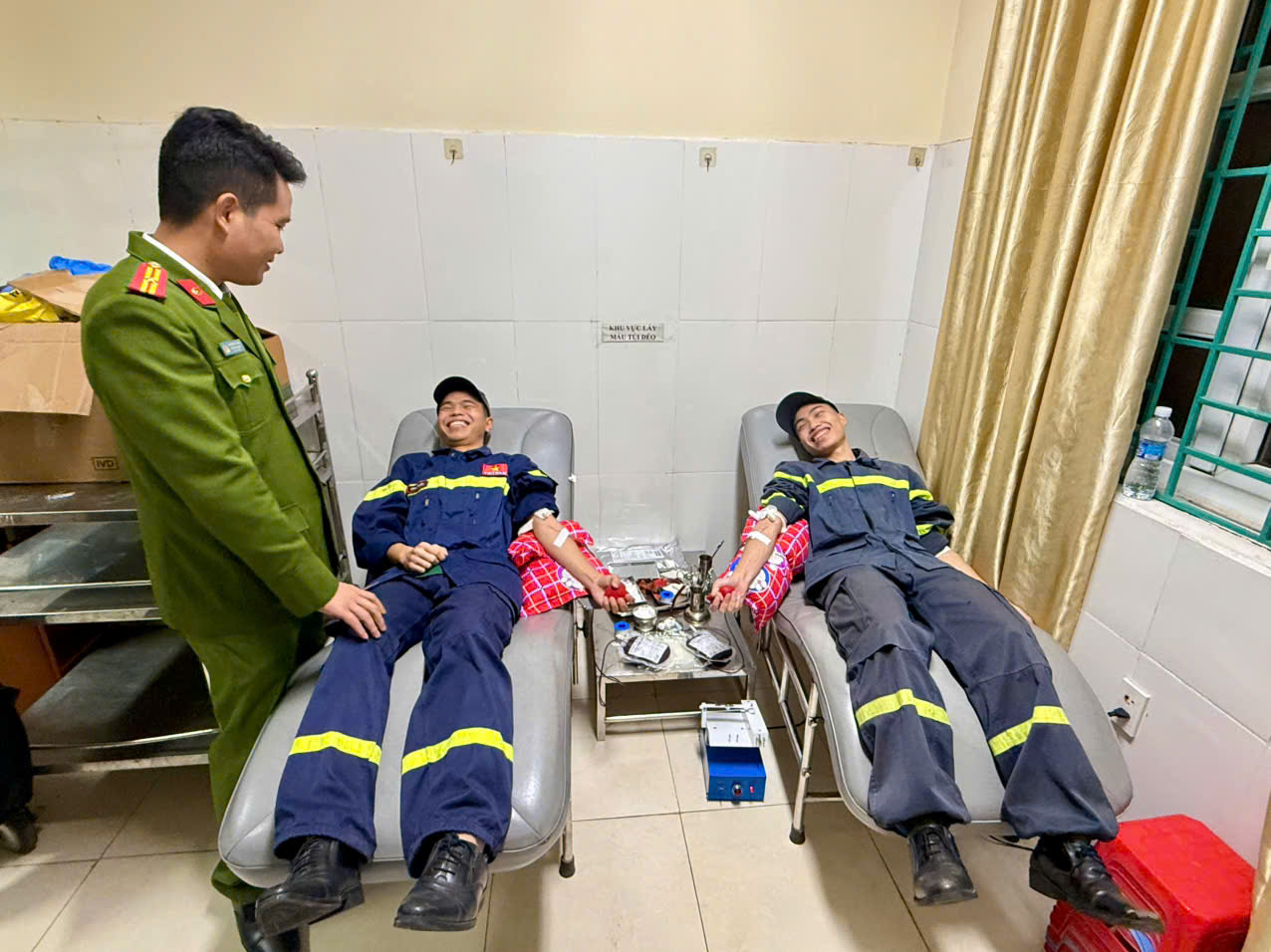 Ngay sau khi tiếp nhận thông tin, cán bộ, chiến sĩ Phòng Cảnh sát PCCC và CNCH đã nhanh chóng có mặt tại bệnh viện, trực tiếp hiến 04 đơn vị máu, hỗ trợ kịp thời cho các y, bác sĩ trong công tác cấp cứu, điều trị người bệnh.