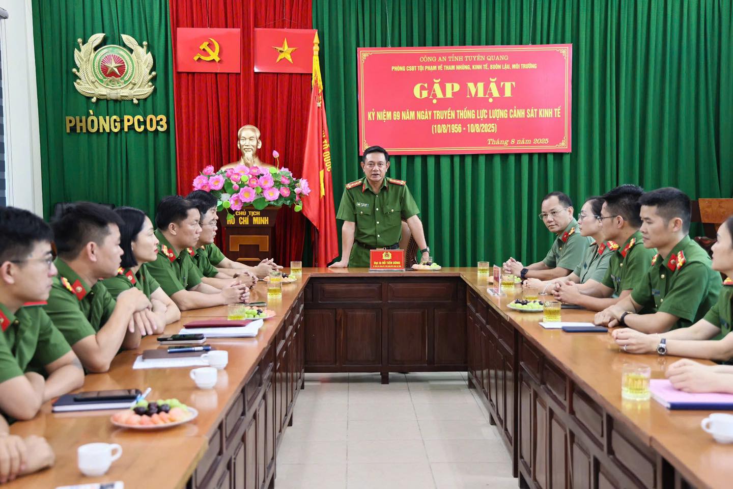 Phát biểu tại buổi gặp mặt, đồng chí Phó Giám đốc Công an tỉnh đánh giá cao những kết quả lực lượng Cảnh sát điều tra tội phạm về tham nhũng, kinh tế, buôn lậu, môi trường đã đạt được trong thời gian qua. Đồng chí yêu cầu thời gian tới, đơn vị cần tích cực tham mưu Đảng uỷ, lãnh đạo Công an tỉnh làm tốt công tác phòng ngừa, đấu tranh với tội phạm về tham nhũng, kinh tế, buôn lậu, môi trường; vận động quần chúng Nhân dân tham gia phát hiện, tố giác những hành vi tham nhũng, buôn lậu, buôn bán hàng cấm, hàng giả; kiên quyết đấu tranh, điều tra, xử lý nghiêm các hành vi phạm tội về tham nhũng, kinh tế, buôn lậu, môi trường; góp phần giữ vững an ninh chính trị, trật tự an toàn xã hội trên địa bàn tỉnh.