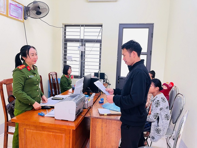 Công an xã Ngọc Linh giải quyết thủ tục hành chính cho người dân.