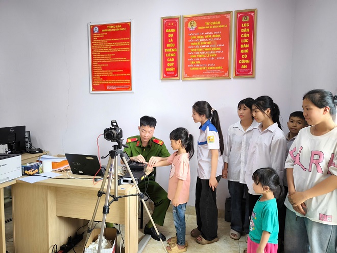 Công an xã Phú Linh làm thủ tục cấp thẻ căn cước cho trẻ em dưới 14 tuổi