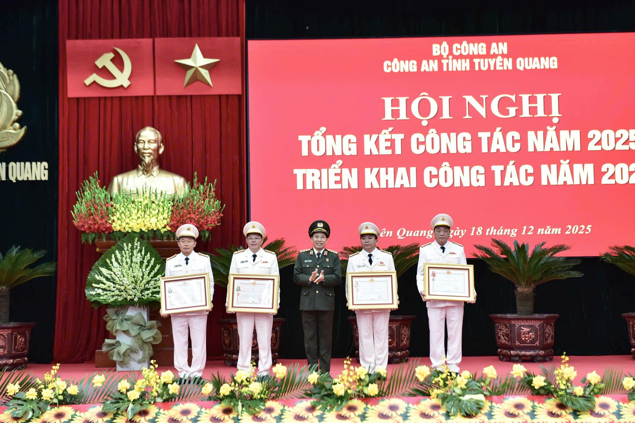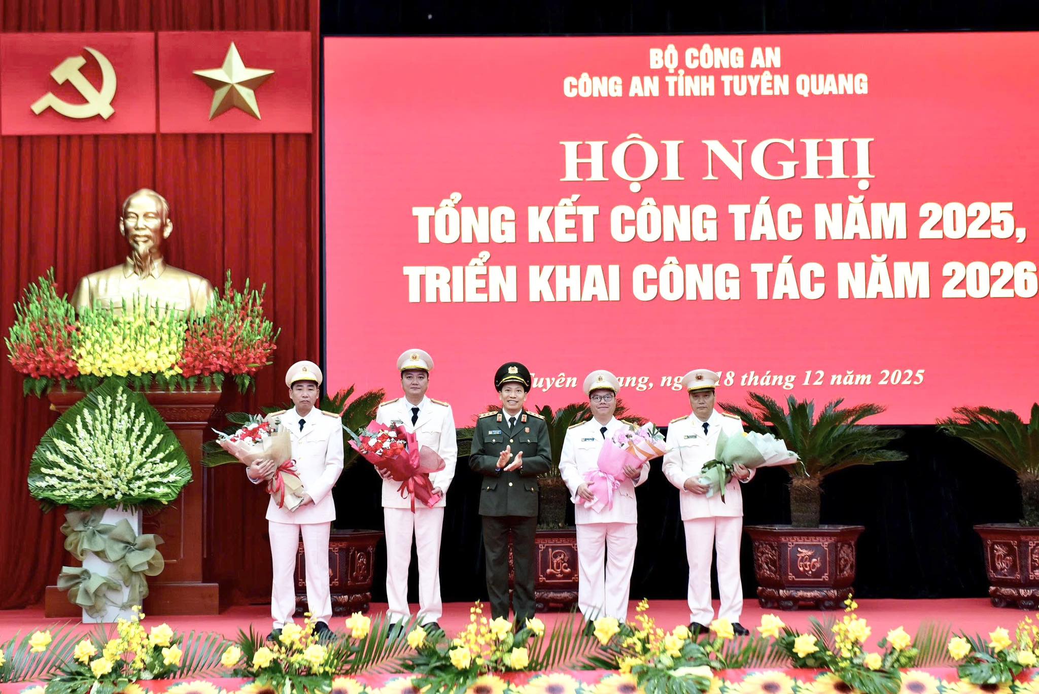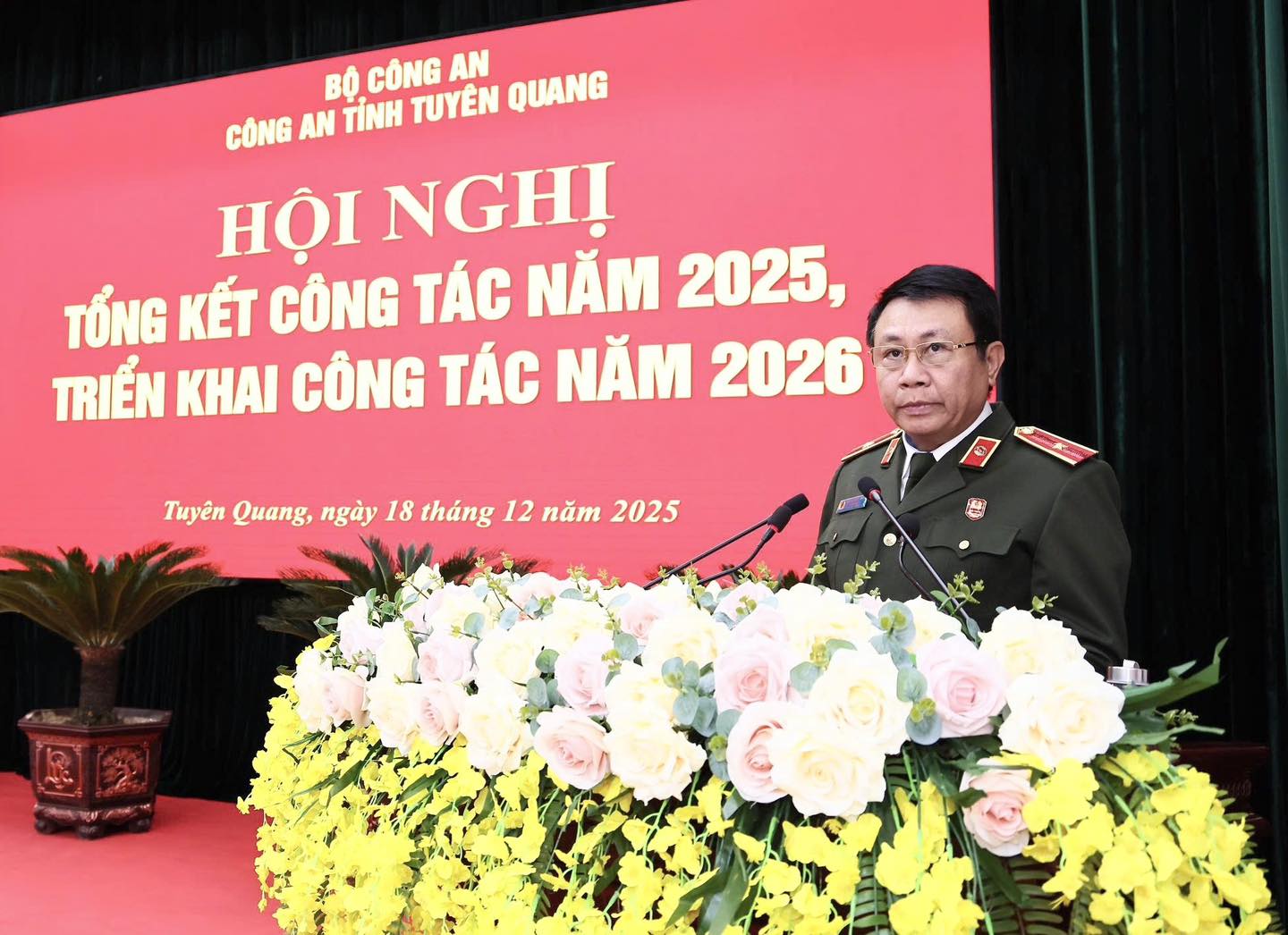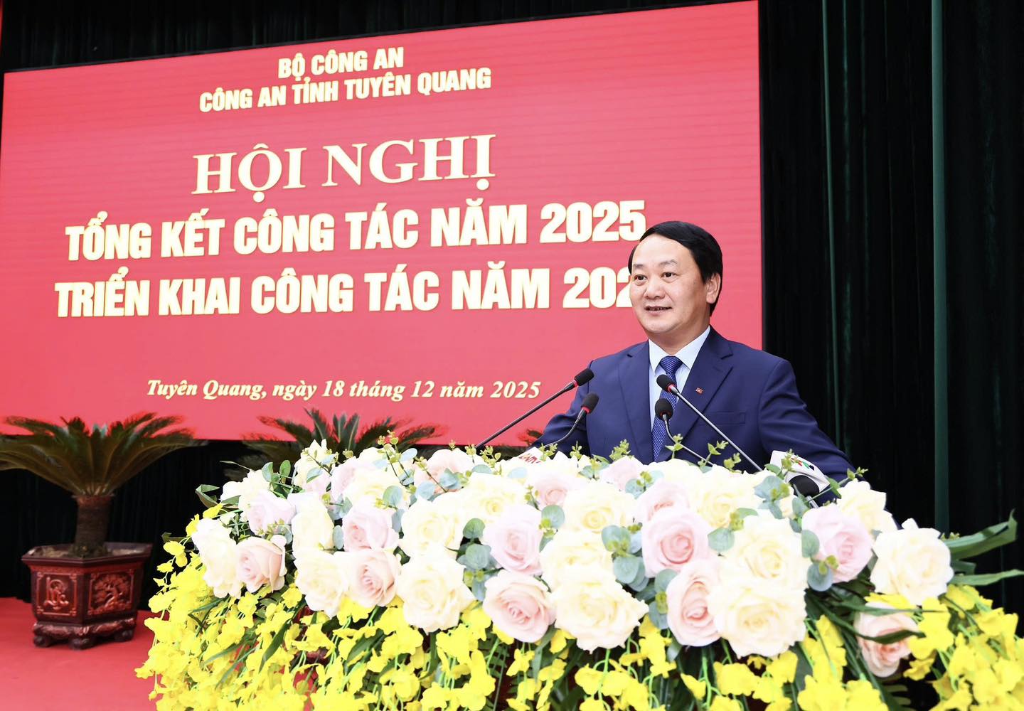 Phát biểu chỉ đạo tại Hội nghị, đồng chí Thứ trưởng Lê Văn Tuyến đánh giá cao kết quả Công an tỉnh đã đạt được; đồng thời nhấn mạnh, trong thời gian tới, lực lượng Công an Tuyên Quang cần nắm, đánh giá sát tình hình, tham mưu chiến lược, giải quyết các vấn đề an ninh trật tự từ sớm, tuyệt đối không để bị động, bất ngờ; tập trung tối đa nguồn lực, lực lượng, phương tiện đảm bảo an ninh an toàn đại hội đảng các cấp tiến tới Đại hội XIV của Đảng, trước mắt là thực hiện hiệu quả đợt cao điểm tấn công trấn áp tội phạm, bảo vệ Tết Nguyên đán Bính Ngọ 2026; tập trung đấu tranh phòng, chống, kiềm chế, kéo giảm bền vững tội phạm, nhất là tội phạm về trật tự xã hội, tội phạm công nghệ cao; tạo chuyển biến tích cực, thực chất công tác quản lý nhà nước về an ninh trật tự; tập trung cao độ các giải pháp xây dựng lực lượng CAND thật sự trong sạch, vững mạnh, chính quy, tinh nhuệ, hiện đại; tiếp tục thực hiện tốt chủ trương tăng cường cán bộ cho Công an cấp cơ sở.