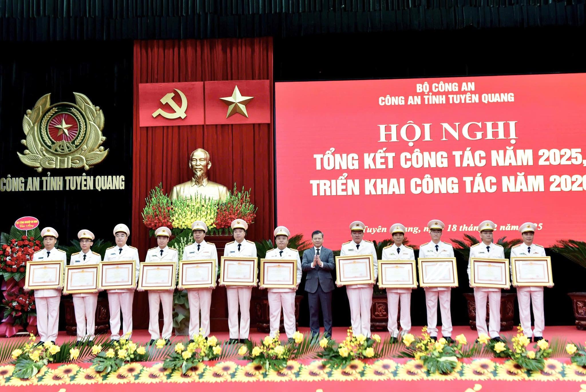 Công an tỉnh đã tổ chức thành công Đại hội đại biểu Đảng bộ Công an tỉnh Tuyên Quang lần thứ XIII, nhiệm kỳ 2025 - 2030; bảo đảm tuyệt đối an ninh an toàn Đại hội đảng các cấp tiến tới Đại hội đại biểu toàn quốc lần thứ XIV của Đảng; Tổ chức nhiều hoạt động sinh hoạt chính trị sâu rộng, ý nghĩa nhân kỷ niệm 80 năm Ngày truyền thống CAND; Hoàn thành xuất sắc nhiệm vụ sắp xếp, triển khai mô hình tổ chức bộ máy Công an địa phương 02 cấp bảo đảm nhanh gọn, đồng bộ, thống nhất, không bị gián đoạn, hoạt động hiệu lực, hiệu quả.