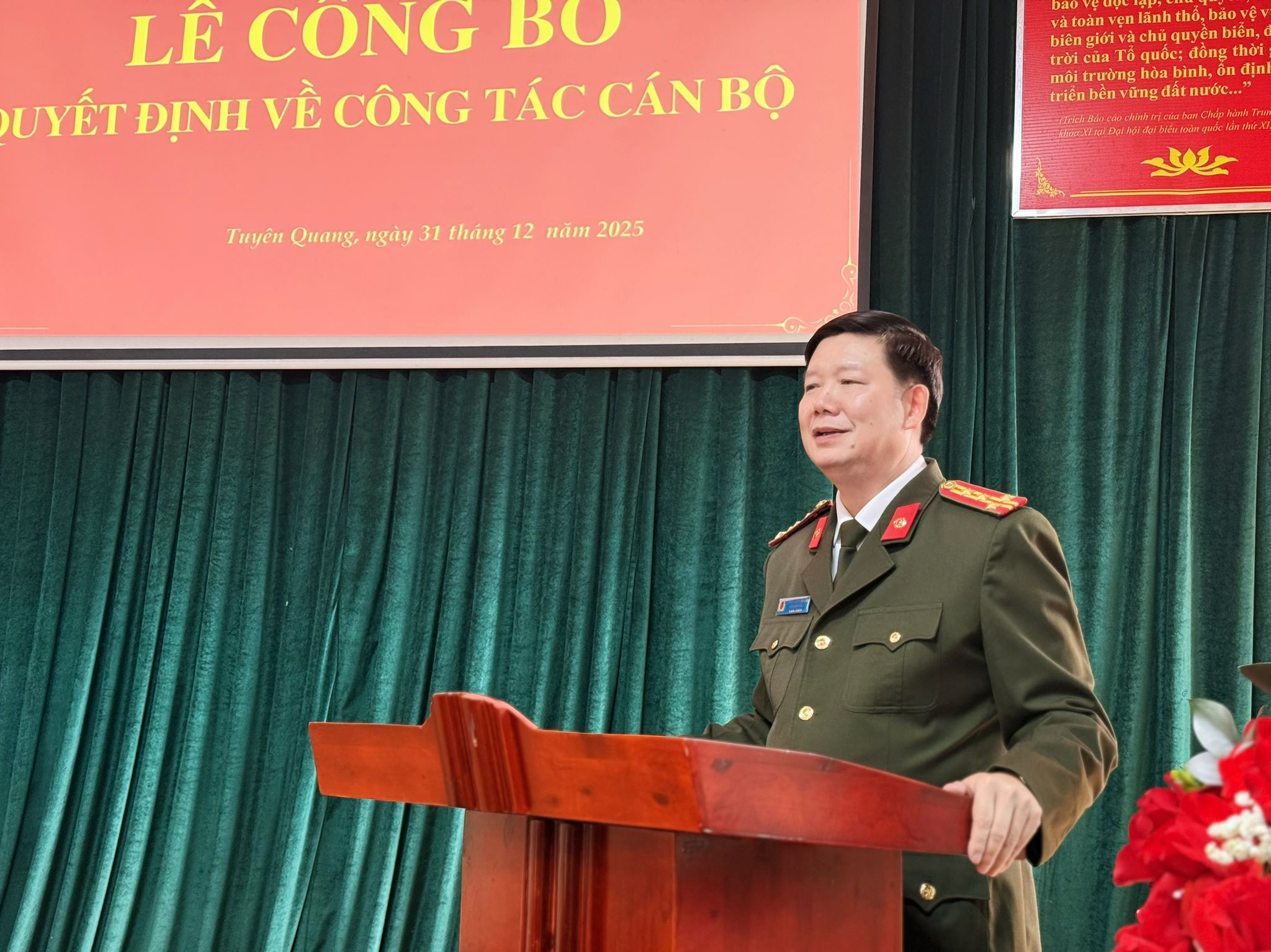Tại buổi lễ, thừa ủy quyền của đồng chí Giám đốc Công an tỉnh Tuyên Quang, Ban Tổ chức đã công bố Quyết định của Giám đốc Công an tỉnh về việc bổ nhiệm đồng chí Thiếu tá Trần Thu Giang giữ chức vụ Phó Giám đốc Bệnh viện Công an tỉnh Tuyên Quang.