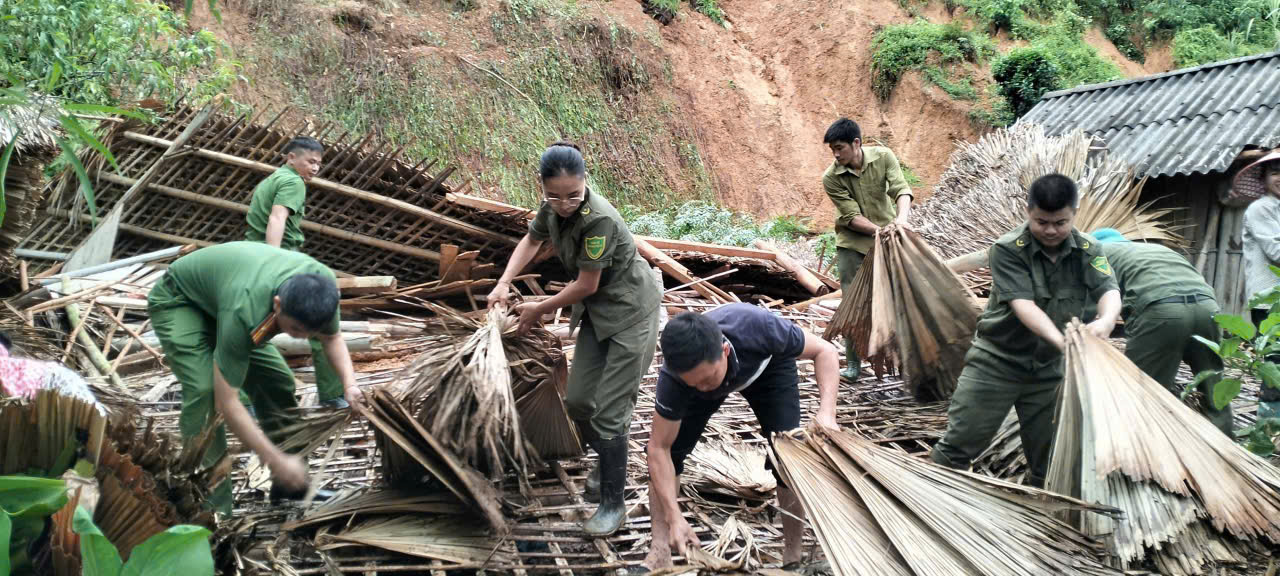 Lực lượng Công an xã giúp Nhân dân khắc phục hậu quả thiên tai