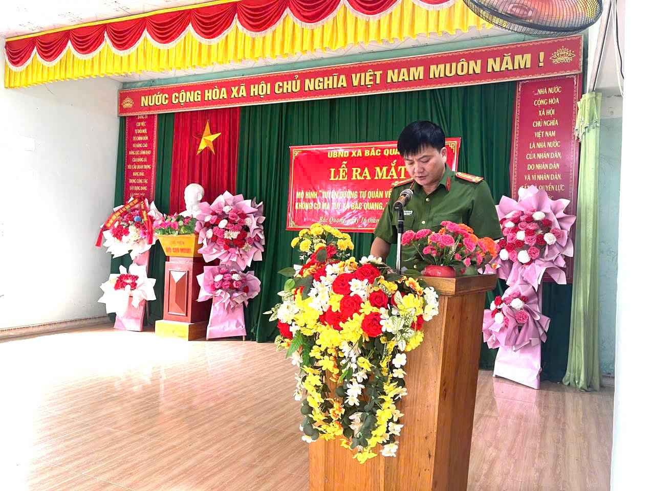 Phát biểu chỉ đạo tại buổi lễ, đồng chí Thượng tá Phạm Văn Hưng nhấn mạnh vai trò quan trọng của việc xây dựng các mô hình tự quản tại cơ sở trong công tác phòng, chống ma tuý; đồng thời đề nghị cấp ủy, chính quyền địa phương tiếp tục quan tâm chỉ đạo, nhân rộng các mô hình hiệu quả, nâng cao ý thức chấp hành pháp luật của Nhân dân. Đồng chí cũng biểu dương tinh thần chủ động, sáng tạo của Công an xã Bắc Quang trong tham mưu triển khai mô hình phù hợp với tình hình thực tế địa phương.