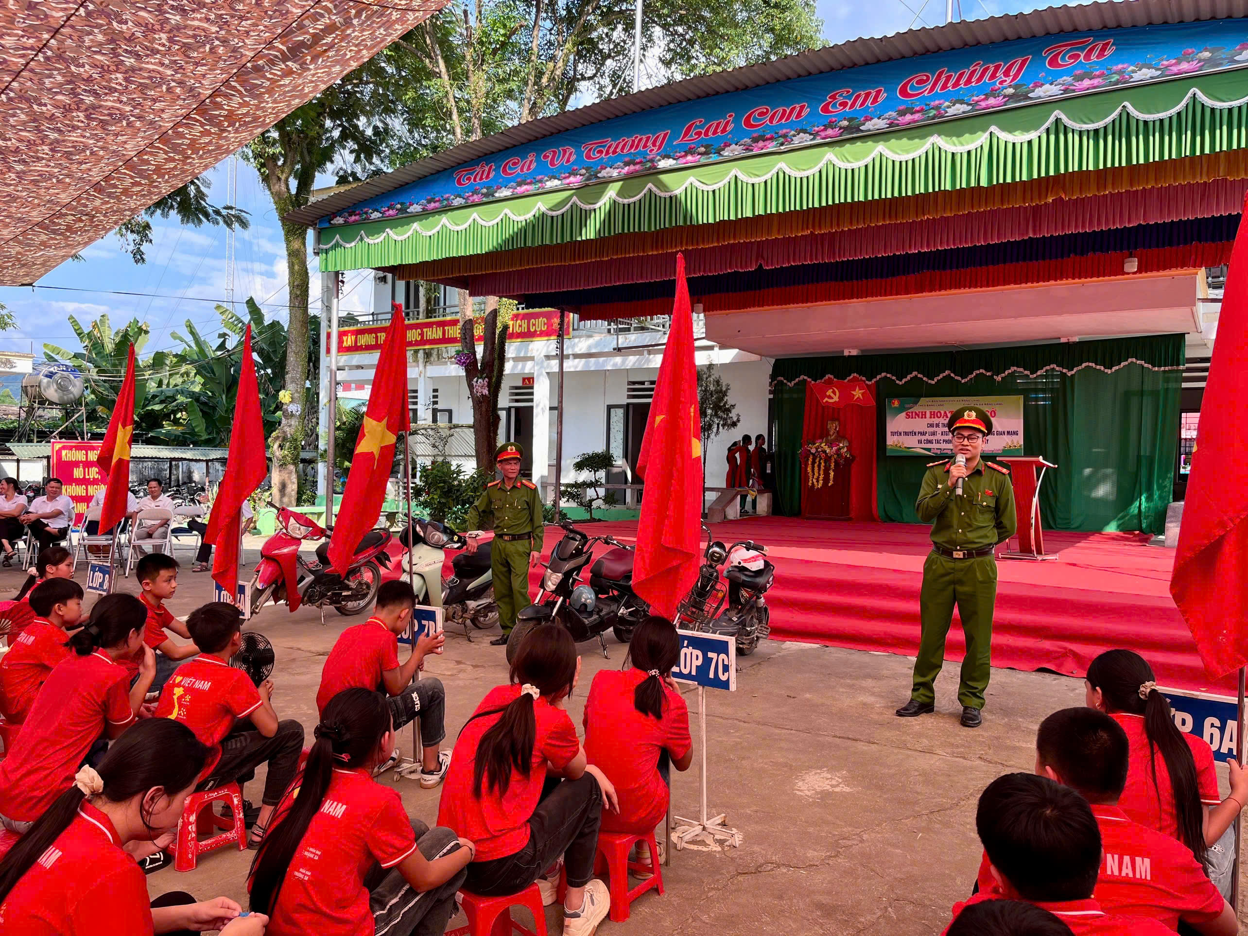 Bên cạnh đó, Công an xã cũng tuyên truyền về an toàn trên không gian mạng, giúp học sinh nhận biết các hành vi lừa đảo, thông tin xấu độc, bạo lực mạng; hướng dẫn cách sử dụng mạng xã hội an toàn, lành mạnh, tránh bị kẻ xấu lợi dụng.