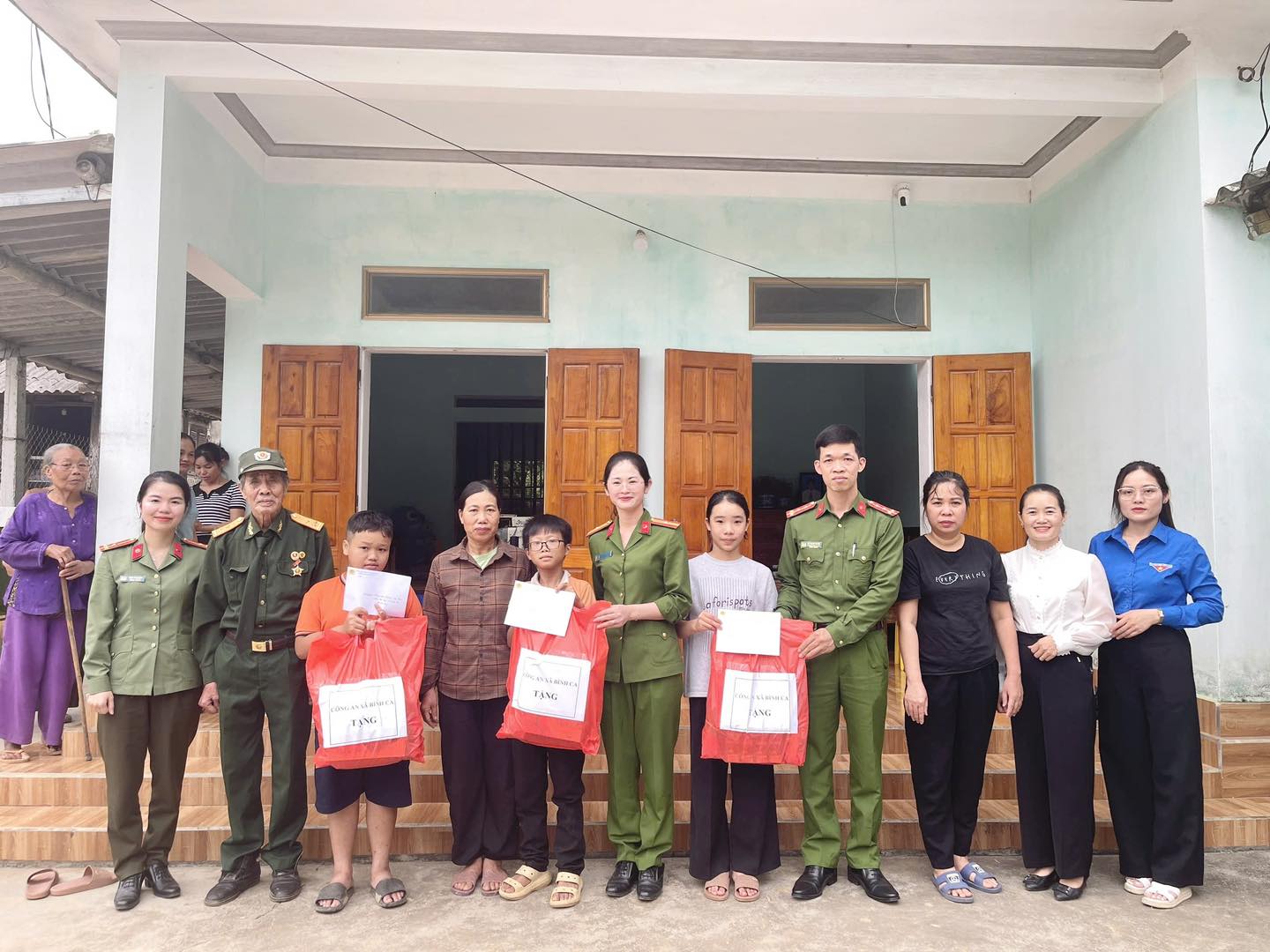 Tại nhà riêng của cháu Trà, Công an xã đã trò chuyện, chia sẻ với gia đình; trao tặng quỹ "nuôi em" lần 1 cho cháu Trà. Công an xã sẽ nhận đỡ đầu cháu từ nay đến năm 2032, khi cháu tròn 18 tuổi. Hi vọng cháu sẽ có thêm nhiều động lực, ý chí vươn lên trong học tập và cuộc sống. Tại chương trình, Công an xã cũng trao tặng 2 phần quà trị giá 1,5 triệu đồng cho 2 cháu có hoàn cảnh khó khăn tại thôn Mắt Rồng và thôn Phú Bình.