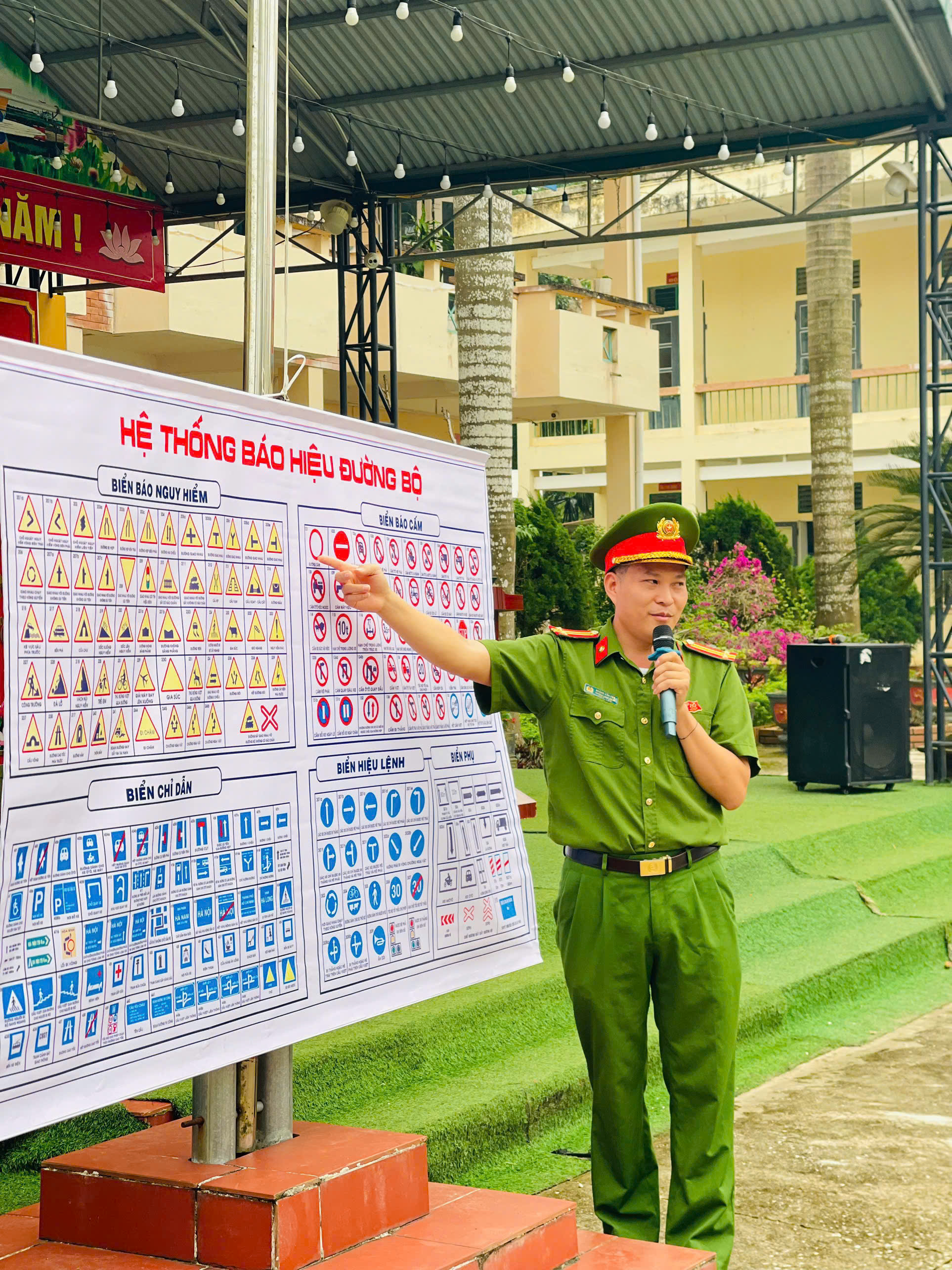 Tại buổi tuyên truyền, các cán bộ Công an xã đã phổ biến những kiến thức cơ bản và tình hình thực tế liên quan đến tệ nạn ma tuý trong lứa tuổi học sinh; những hành vi vi phạm an toàn giao thông phổ biến hiện nay; nguy cơ từ việc sử dụng, tàng trữ vũ khí, vật liệu nổ, công cụ hỗ trợ trái phép; và đặc biệt là các biểu hiện, hệ luỵ của bạo lực học đường -> một vấn đề đang được xã hội quan tâm.