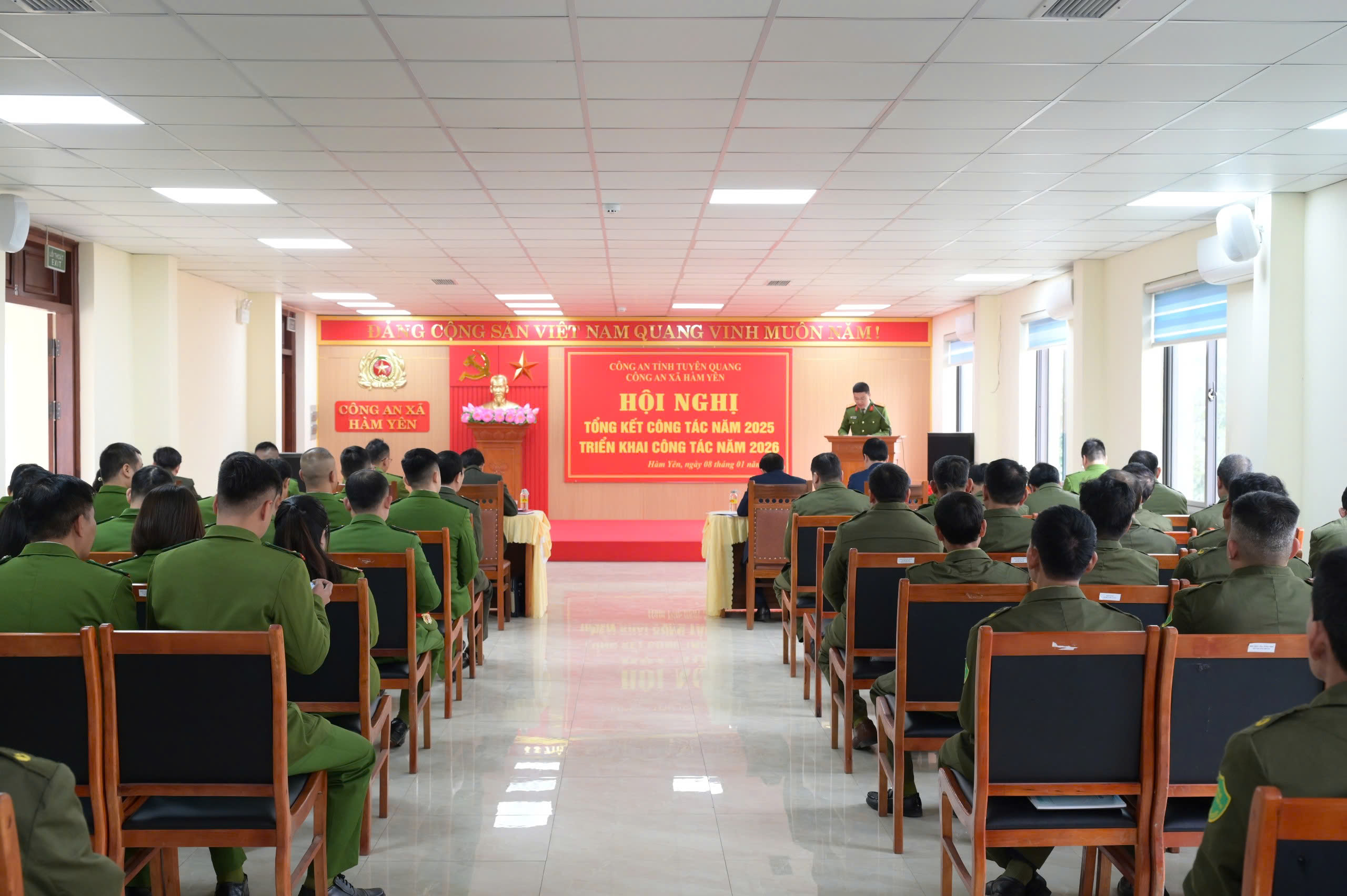 Phát biểu tại Hội nghị, đồng chí Trưởng Công an xã Hàm Yên đã phát động phong trào thi đua “Vì an ninh Tổ quốc” năm 2026, kêu gọi toàn thể cán bộ, chiến sĩ Công an xã tiếp tục nêu cao tinh thần trách nhiệm, phát huy vai trò tiên phong, gương mẫu; đoàn kết, khắc phục khó khăn, vượt qua thử thách, quyết tâm hoàn thành xuất sắc mọi nhiệm vụ được giao, góp phần giữ vững ổn định an ninh chính trị, trật tự an toàn xã hội trên địa bàn./.