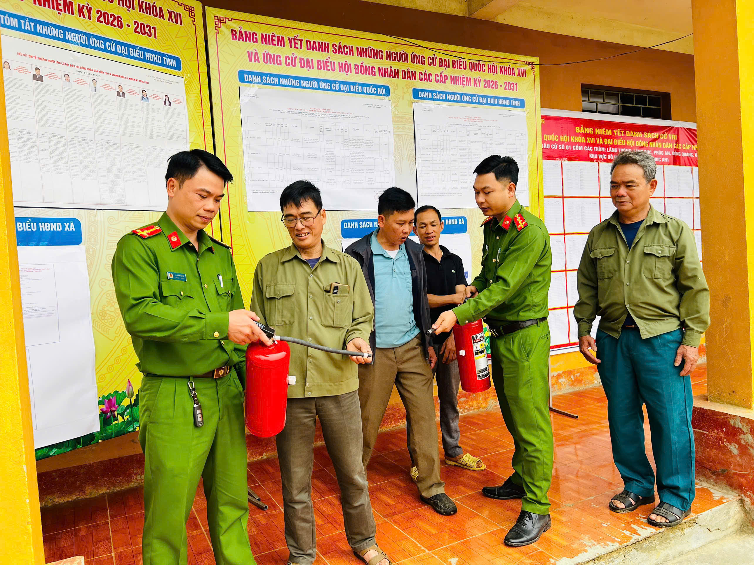 Tại các điểm bầu cử, Công an xã đã tiến hành kiểm tra, rà soát toàn diện các điều kiện an toàn về PCCC; hướng dẫn các Tổ bầu cử bố trí, trang bị đầy đủ các phương tiện chữa cháy ban đầu như bình chữa cháy tại chỗ, công cụ phá dỡ thô sơ, túi sơ cứu… để sẵn sàng xử lý khi có tình huống phát sinh. Bên cạnh đó, lực lượng Công an cũng nhắc nhở các thành viên trong Tổ bầu cử chú ý thực hiện nghiêm các quy định về sử dụng điện an toàn, kiểm tra hệ thống điện, thiết bị chiếu sáng, không để xảy ra nguy cơ chập cháy trong quá trình tổ chức và phục vụ công tác bầu cử.