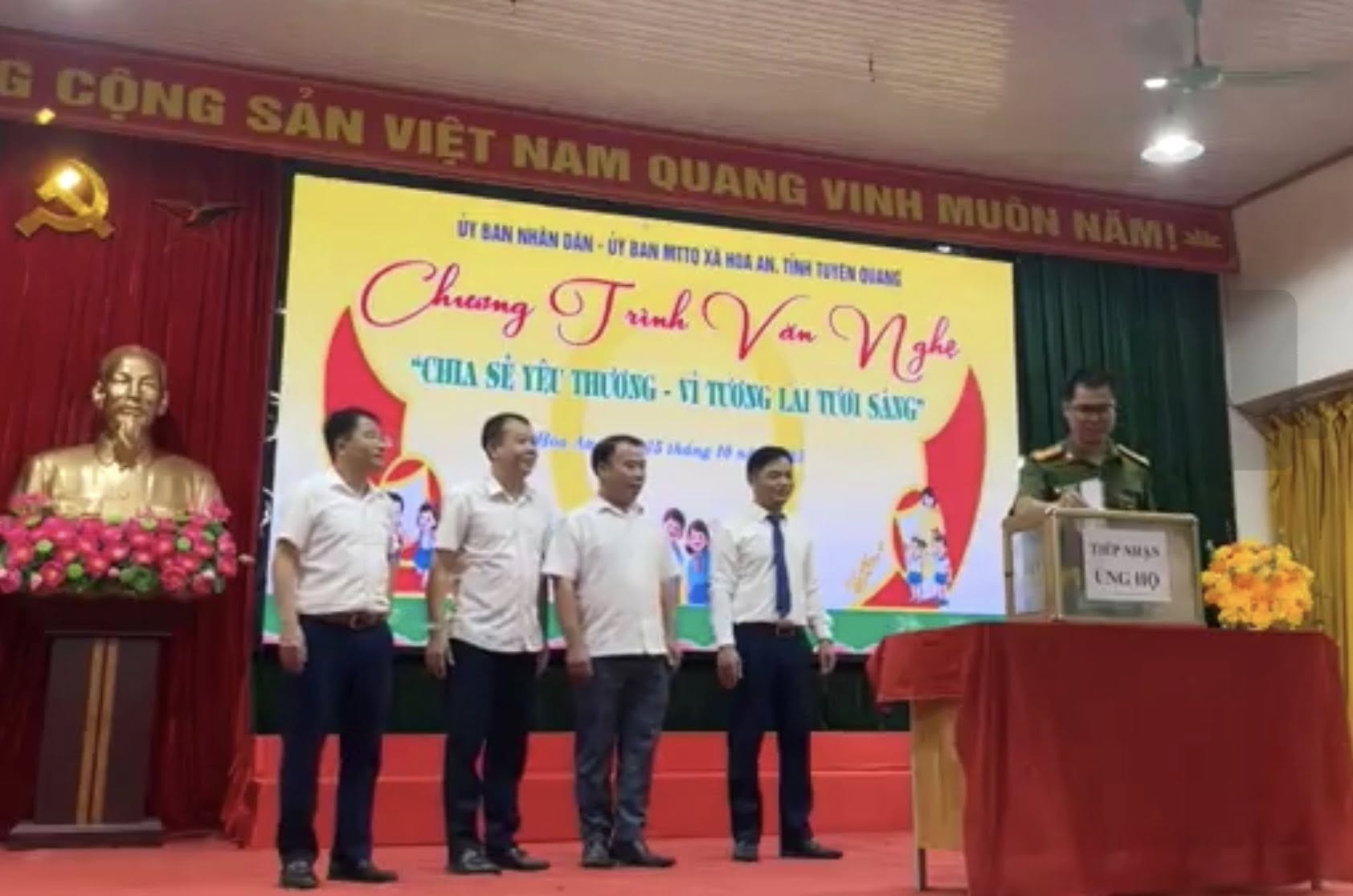 Tại chương trình, Ban Tổ chức đã phát động phong trào quyên góp ủng hộ xây dựng cơ sở vật chất các trường học và thúc đẩy chuyển đổi số trên địa bàn xã. Chương trình đã nhận được sự hưởng ứng nhiệt tình từ các tổ chức, cá nhân, doanh nghiệp cùng những tấm lòng vàng trong và ngoài địa bàn. Trong đó, 100% chỉ huy, cán bộ, chiến sĩ Công an xã Hòa An đã tích cực tham gia quyên góp, ủng hộ với tổng số tiền 10.800.000 đồng.