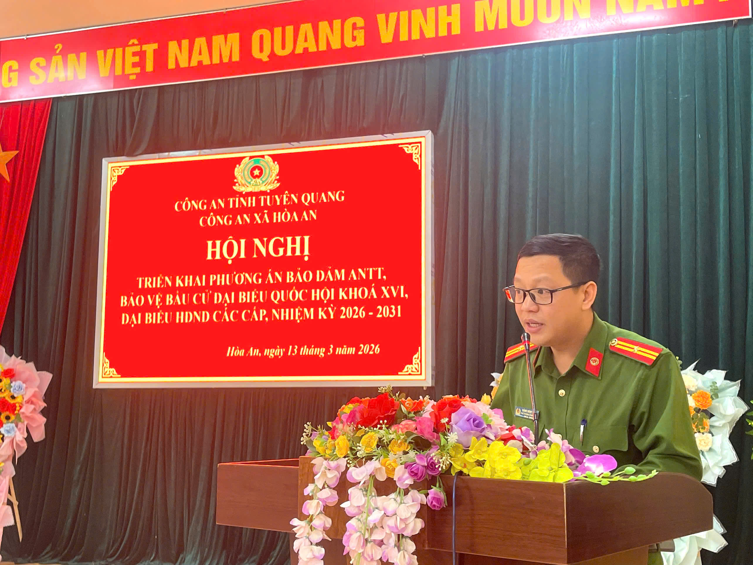 Phát biểu tại hội nghị, đồng chí Đỗ Văn Hiếu biểu dương tinh thần chủ động, trách nhiệm của lực lượng Công an xã trong công tác tham mưu, triển khai các kế hoạch, Phương án bảo vệ. Đồng chí nhấn mạnh sự cần thiết của việc phối hợp chặt chẽ giữa cán bộ tăng cường và lực lượng tại chỗ; yêu cầu các lực lượng nêu cao tinh thần trách nhiệm, chủ động nắm tình hình, xử lý hiệu quả các tình huống, không để bị động, bất ngờ, quyết tâm bảo đảm tuyệt đối an ninh, an toàn cho cuộc bầu cử diễn ra thành công tốt đẹp.