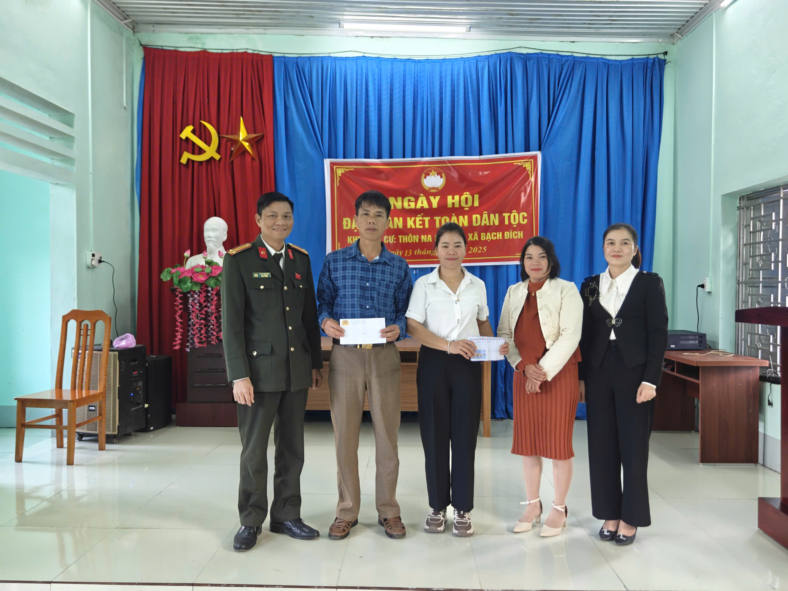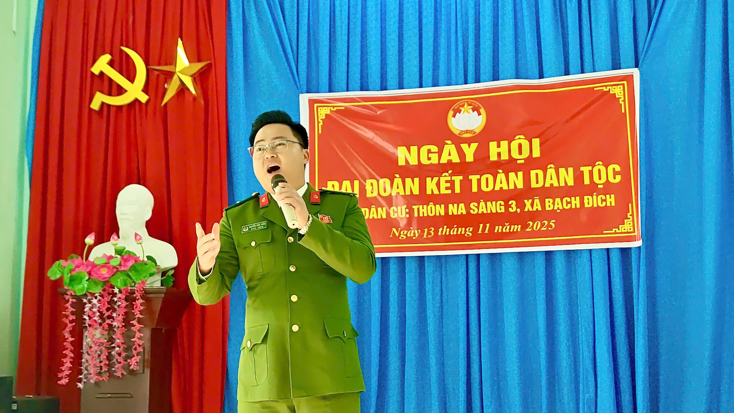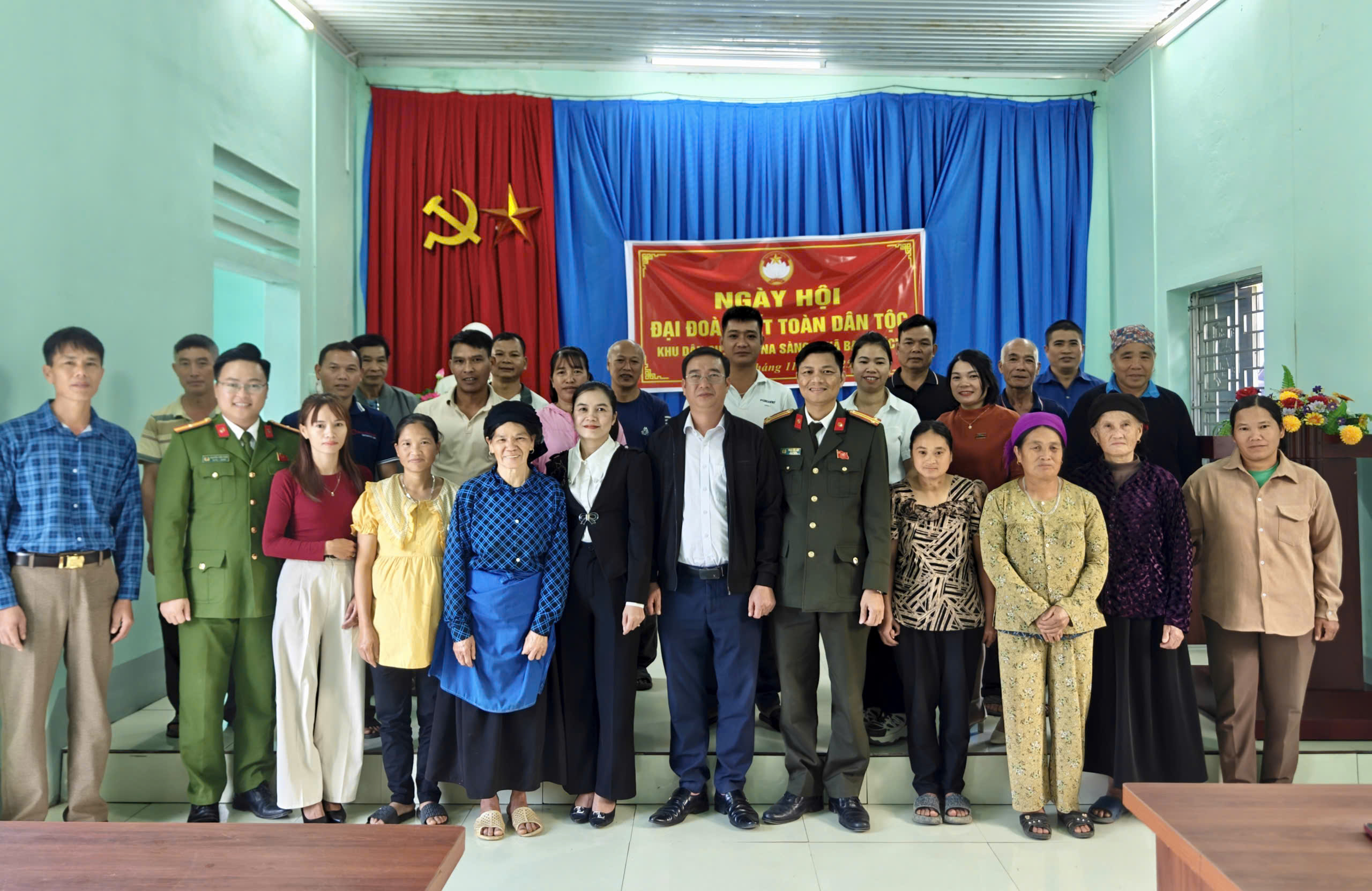 Tại các điểm thôn, lực lượng Công an xã đã chủ động phối hợp, hỗ trợ công tác chuẩn bị và tổ chức Ngày hội, góp phần tạo không khí phấn khởi, vui tươi trong nhân dân; phối hợp tuyên truyền, phổ biến pháp luật đến người dân, giúp nâng cao ý thức chấp hành pháp luật và bảo đảm an ninh, trật tự cơ sở. Cùng với đó, Đoàn viên thanh niên Công an xã xung kích Hỗ trợ nhân dân góp ý Dự thảo các văn kiện Đại hội XIV của Đảng thông qua ứng dụng VNeID, phát huy quyền làm chủ của nhân dân trong xây dựng Đảng và chính quyền; Tổ chức giao lưu văn nghệ, tạo không khí đoàn kết, vui tươi, thể hiện tinh thần gắn bó keo sơn giữa lực lượng Công an và nhân dân.
