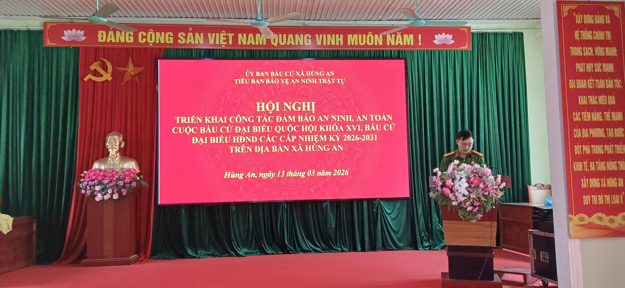 Với tinh thần trách nhiệm cao, Công an xã Hùng An quyết tâm bảo đảm tốt tình hình an ninh, trật tự trên địa bàn, góp phần để cuộc bầu cử đại biểu Quốc hội và đại biểu HĐND các cấp, nhiệm kỳ 2026 - 2031 diễn ra an toàn, dân chủ, đúng pháp luật và thực sự trở thành Ngày hội của toàn dân./.