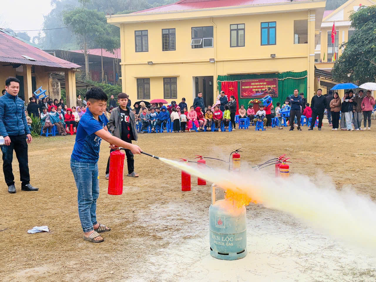Tại buổi tuyên truyền, lực lượng Công an xã đã phổ biến các kiến thức cơ bản về nguyên nhân gây cháy, nổ; các biện pháp phòng ngừa; kỹ năng xử lý ban đầu và thoát nạn an toàn khi xảy ra sự cố cháy, nổ. Bên cạnh đó, các thầy cô giáo và học sinh còn được hướng dẫn, trực tiếp thực hành sử dụng bình chữa cháy xách tay để dập tắt đám cháy giả định dưới sự hướng dẫn của lực lượng Công an.