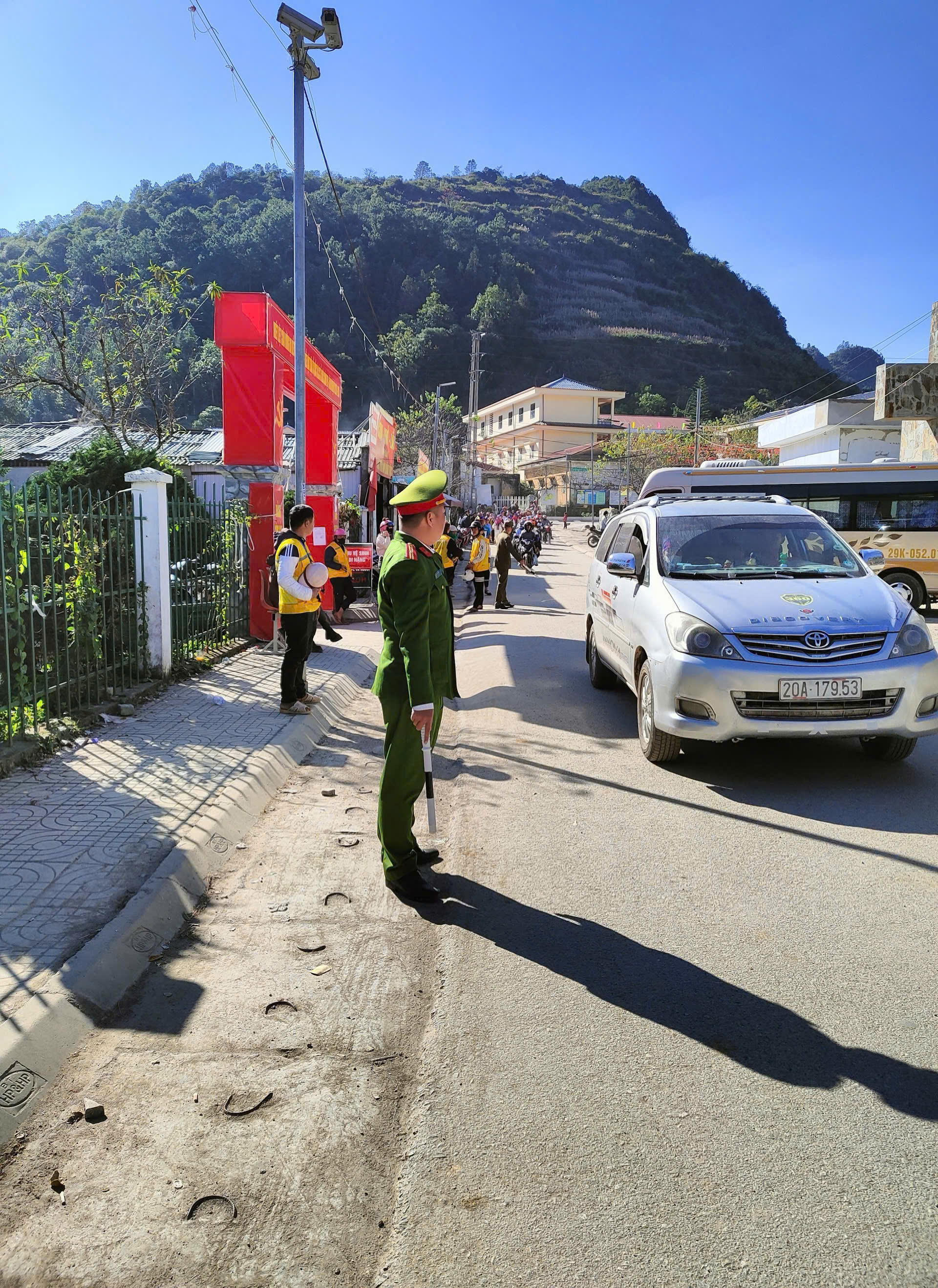 Trong những ngày trước khi diễn ra Lễ hội, lượng người và phương tiện đổ về địa phương tăng cao, Công an xã Lũng Cú đã bố trí các tổ công tác tại các điểm nút giao thông để hướng dẫn, phân luồng, tránh ùn tắc; nhắc nhở người dân chấp hành quy định giao thông. Để tránh ùn tắc, đem đến không gian trải nghiệm văn hóa, văn nghệ cho du khách, xã Lũng Cú đã ra mắt Đội xe ôm tự quản. Du khách có thể sử dụng xe điện hoặc xe ôm tự quản khi di chuyển trên địa bàn, hạn chế các xe ô tô lớn lên khu vực Cột cờ để tránh ùn tắc và bảo đảm an toàn giao thông.