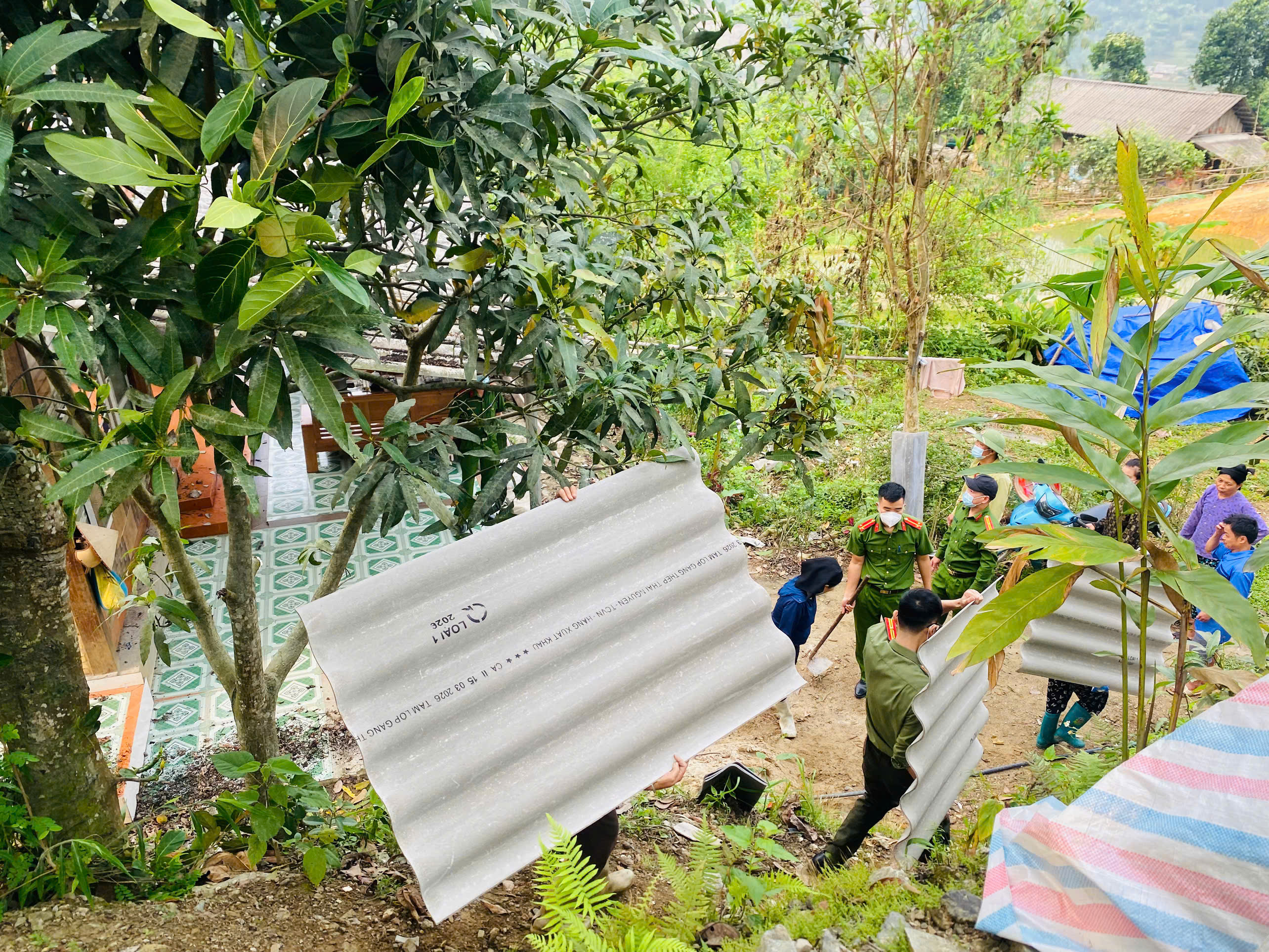 Ngay sau khi nắm bắt tình hình, sáng ngày 31/3/2026 Công an xã Minh Ngọc đã chủ động phối hợp với tổ ANTT thôn Lùng Xuôi hỗ trợ gia đình khắc phục hậu quả. Cán bộ, chiến sĩ đã trực tiếp tham gia dọn dẹp cây đổ, thu gom vật liệu, vận chuyển và lợp lại phần mái bị hư hỏng, bảo đảm điều kiện che chắn, ổn định sinh hoạt cho gia đình.