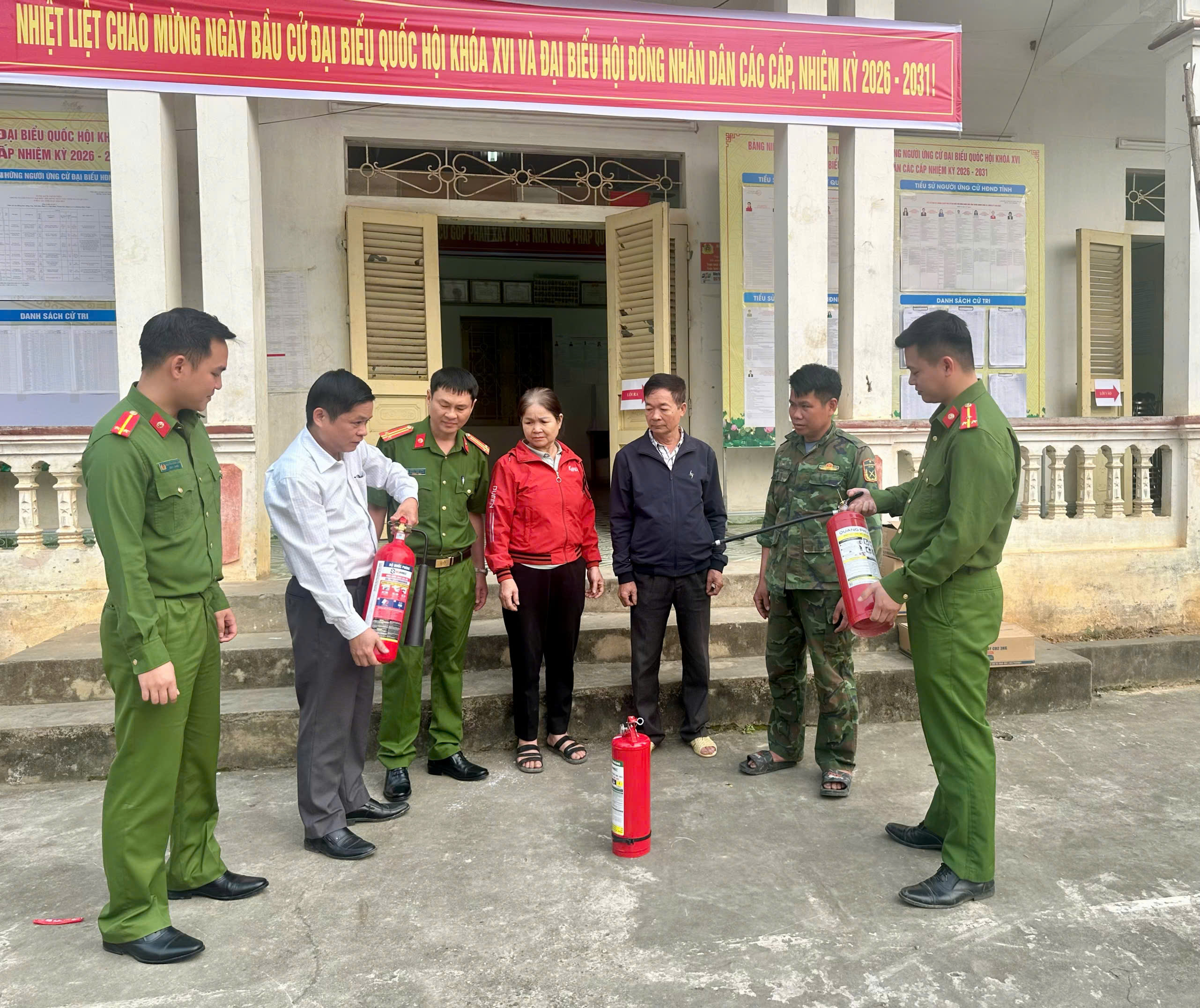 Chủ động các biện pháp an toàn PCCC tại chỗ: Song song với các hoạt động ý nghĩa, lực lượng Công an xã đã tích cực hướng dẫn kỹ thuật và kiểm tra an toàn PCCC tại các khu vực bỏ phiếu: