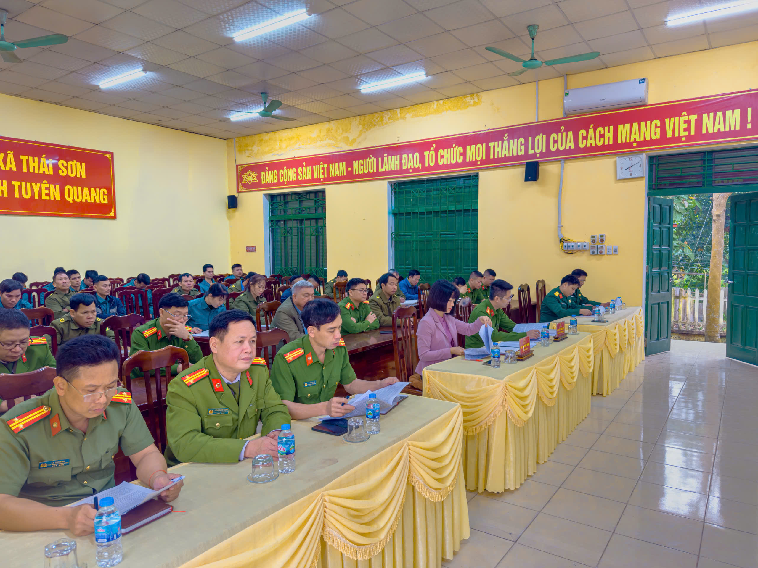 Tại hội nghị đến dự và chỉ đạo có đồng chí Nhữ Thị Tuyết Thanh – Bí Thư Đảng ủy xã; đồng chí Đại úy Nguyễn Ngọc Vũ - Trưởng Tiểu Ban ANTT, Trưởng Công an xã cùng có các đồng chí lãnh đạo Công an xã, thành viên Tổ Tiểu ban ANTT và các đồng chí Tổ ANTT ở cơ sở và Thôn đội trưởng ở các thôn đã quán triệt các nội dung chỉ đạo của cấp trên về công tác bảo đảm an ninh trật tự trước, trong và sau thời gian diễn ra bầu cử; đồng thời thông qua kế hoạch cụ thể về bố trí lực lượng, phân công nhiệm vụ cho từng Tổ đảm bảo ANTT ở các khu vực bỏ phiếu nhằm chủ động nắm chắc tình hình địa bàn, kịp thời phát hiện và xử lý các vấn đề phát sinh liên quan đến an ninh trật tự.