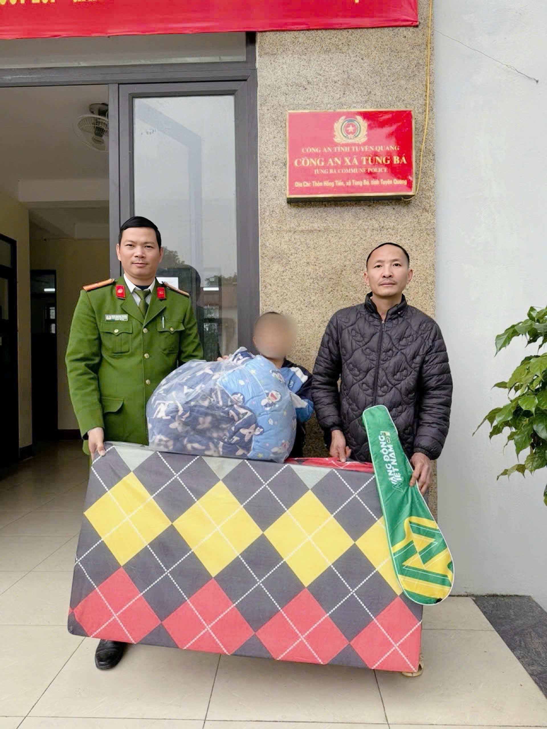 Sau thời gian khẩn trương xác minh, đến 00 giờ 30 phút ngày 21/01/2026 Công an xã Tùng Bá đã xác định được cháu bé có tên là V.D.P, Sinh năm 2011, trú tại thôn Khuôn Phà, xã Tùng Bá, tỉnh Tuyên Quang. Ngay sau đó, Công an xã Tùng Bá trực tiếp ra Công an Phường Hà Giang 1 tiếp nhận cháu bé V.D.P đưa về Công an xã Tùng Bá và liên hệ với gia đình đến tiếp nhận, bàn giao và đưa cháu về gia đình chăm sóc. Đồng thời, Công an xã Tùng Bá đã tặng cho cháu 01 phần quà gồm chăn bông, cái gối, đệm giúp cháu P.