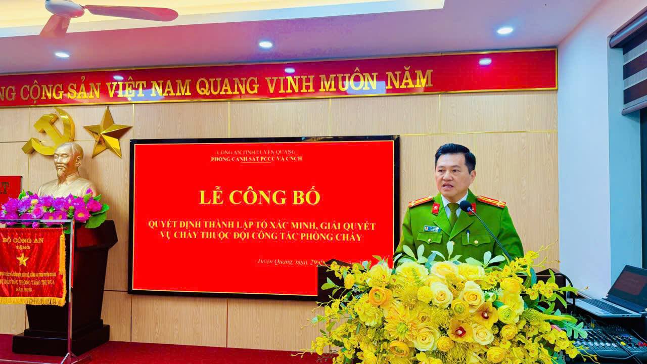 Phát biểu chỉ đạo tại Lễ công bố, đồng chí Trưởng phòng yêu cầu các thành viên Tổ Xác minh, giải quyết vụ cháy phải khẩn trương bắt tay vào công việc, chủ động tự học tập, nghiên cứu, không ngừng nâng cao trình độ chuyên môn, nghiệp vụ và kiến thức pháp luật, đặc biệt là các quy định liên quan đến công tác PCCC, điều tra nguyên nhân cháy, kỹ năng thu thập và đánh giá chứng cứ. Việc tự học phải được thực hiện nghiêm túc, có chiều sâu, gắn lý luận với thực tiễn, đáp ứng yêu cầu nhiệm vụ trong tình hình mới.
