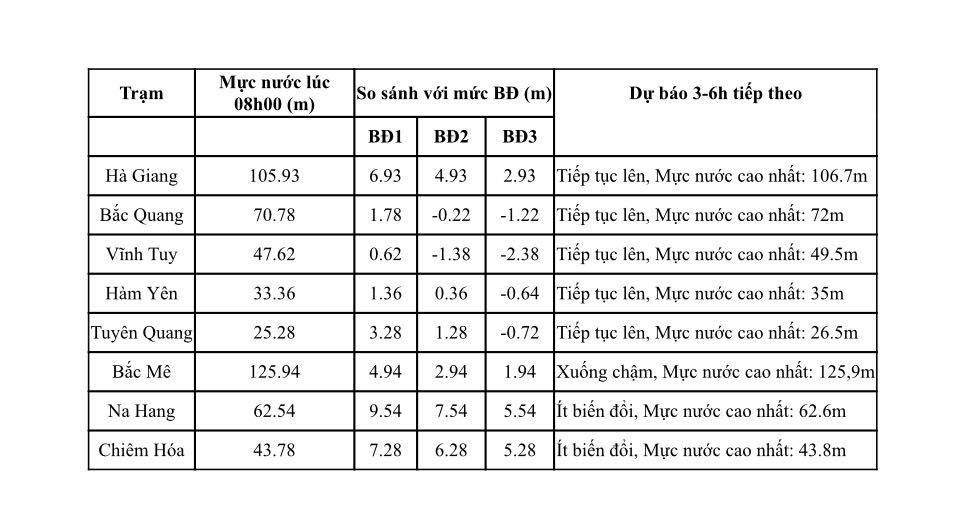 COS NƯỚC LÚC 8H SÁNG NAY. MỰC NƯỚC TẠI CÁC TRẠM ĐỀU TIẾP TỤC LÊN