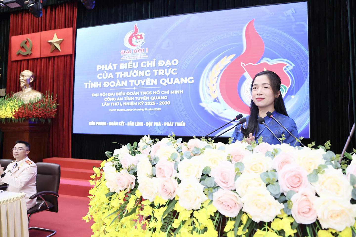 Phát biểu chỉ đạo tại Đại hội, đồng chí Giám đốc Công an tỉnh và Bí thư Tỉnh đoàn Tuyên Quang đã ghi nhận và biểu dương những kết quả nổi bật mà tuổi trẻ Công an 02 tỉnh Tuyên Quang - Hà Giang đã đạt được trong nhiệm kỳ qua; đồng thời mong muốn trong nhiệm kỳ tới, Đoàn Thanh niên Công an tỉnh tiếp tục phát huy tinh thần tiên phong, xung kích, đổi mới phương thức hoạt động, xây dựng hình mẫu người chiến sĩ Công an “bản lĩnh, nhân văn, vì Nhân dân phục vụ” trong thời kỳ chuyển đổi số.