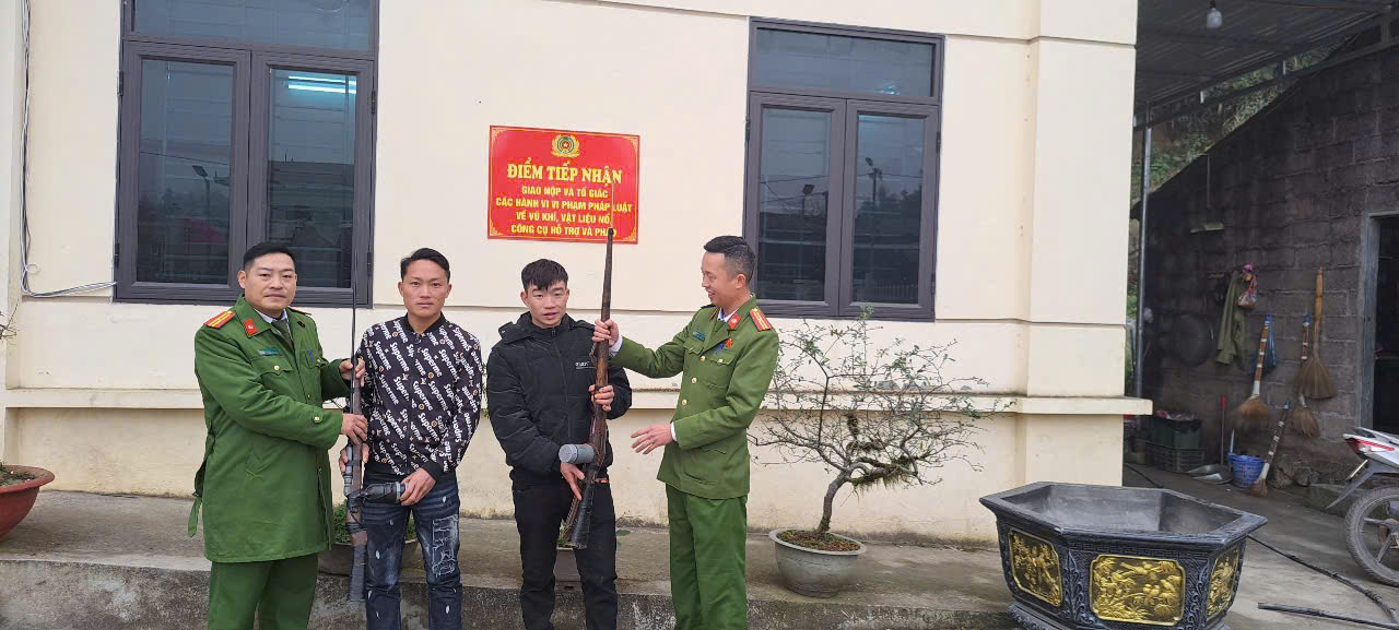 Thông qua đợt cao điểm tổng rà soát nhân khẩu, hộ khẩu trên địa bàn, Công an xã tích cực tuyên truyền các quy định của pháp luật về quản lý, sử dụng vũ khí, vật liệu nổ, công cụ hỗ trợ và pháo, nhất là các loại súng tự kíp, súng hơi, súng PCP nén khí, súng hơi cồn tự chế, các loại đạn chì… có thể phạm tội “Tàng trữ vũ khí quân dụng” theo Điều 304 Bộ Luật hình sự. Nhiều người dân địa phương từ lâu có thói quen dùng súng tự chế như súng kíp, súng hơi cồn, súng PCP nén khí, đạn bi sắt, đạn chì để săn bắn động vật hoặc để làm kỷ niệm, treo phong thủy trừ tà… Sau khi được tuyên truyền, vận động người dân hiểu đã tự nguyện giao nộp những khẩu súng đã gắn bó với bản thân, gia đình từ rất lâu, những khẩu súng có giá trị tương cao cho Công an xã, để động viên tinh thần tự nguyện, tạo sự lan tỏa trong cộng đồng, Công an xã đã trao 150kg gạo cho các cá nhân giao nộp vũ khí (10kg/cá nhân).
