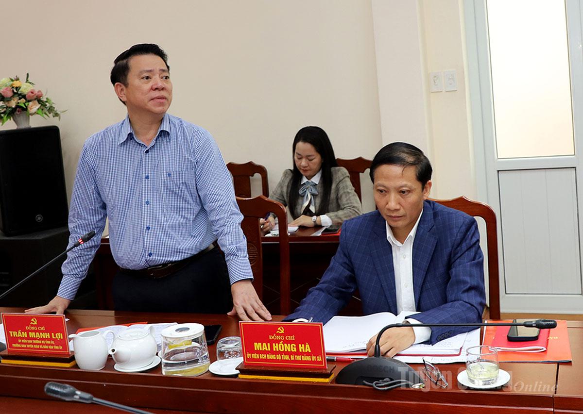 Trưởng Ban Tuyên giáo và Dân vận Tỉnh ủy Trần Mạnh Lợi thảo luận tại buổi làm việc.
