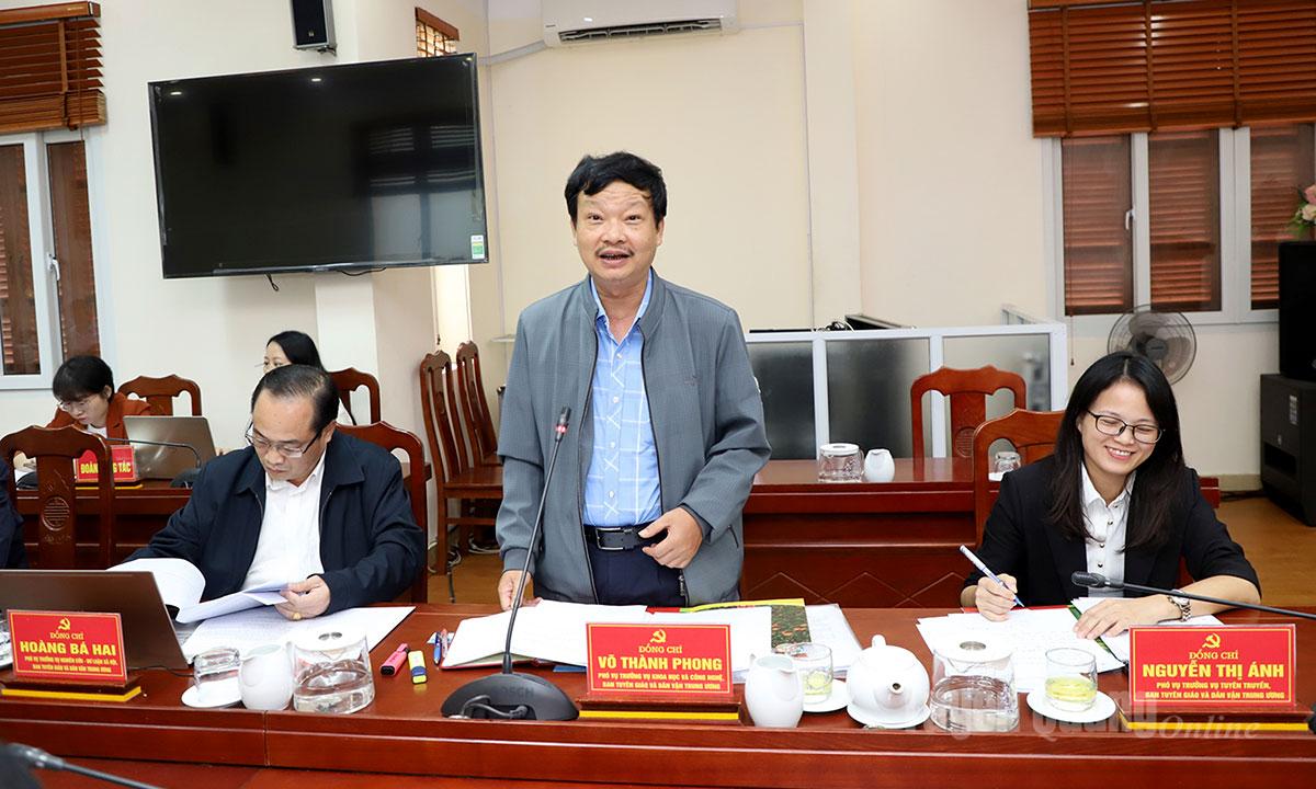 Lãnh đạo Vụ Khoa học và Công nghệ Ban Tuyên giáo và Dân vận Trung ương thảo luận tại buổi làm việc.