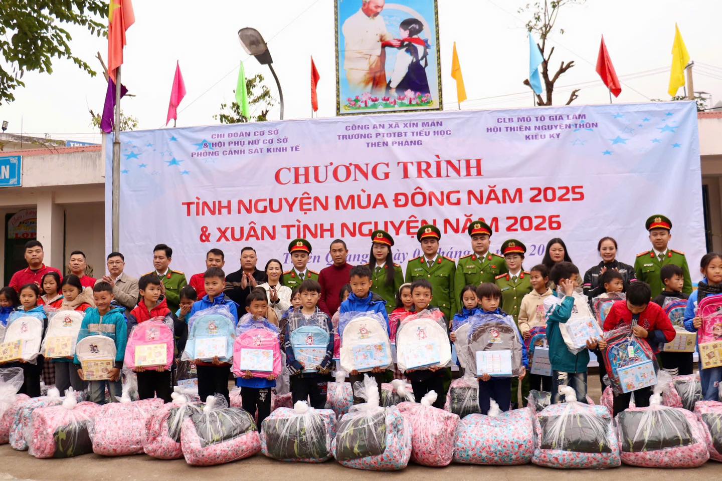 Trước đó, Phòng An ninh nội địa phối hợp Công an các xã Tân Tiến, Xín Mần và đoàn thiện nguyện do Đại đức Thích Quang Tuệ cùng các phật tử, nhà hảo tâm đến từ tỉnh Hưng Yên trao tặng 500 áo ấm, 200kg gạo cho các em học sinh; 250 suất quà cho các hộ gia đình có hoàn cảnh khó khăn trên địa bàn 02 xã Tân Tiến, Xín Mần. Các phần quà có tổng trị giá trên 200 triệu đồng.