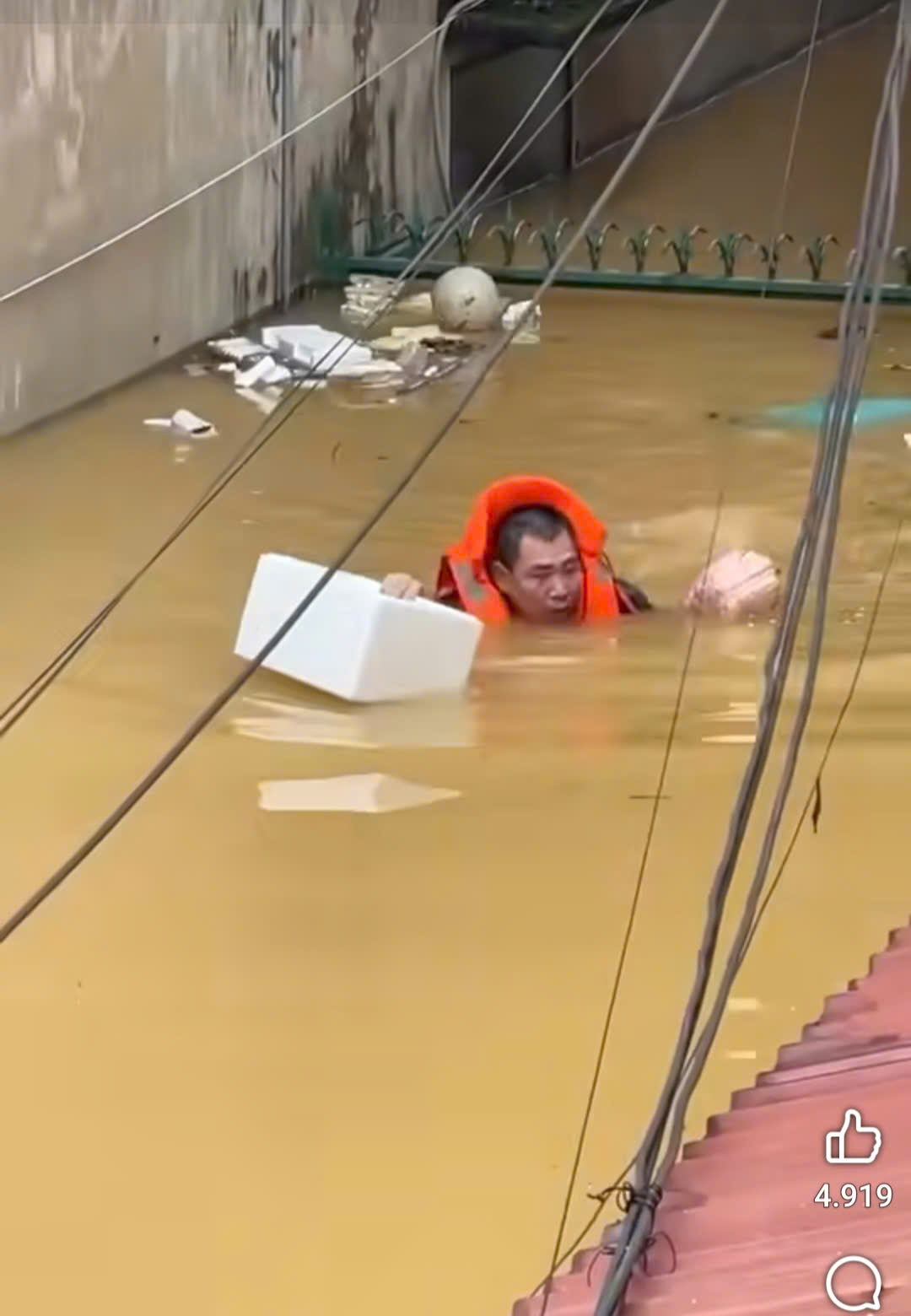 Một người dân hốt hoảng gọi với theo: “Anh Thìn ơi, nguy hiểm lắm, nước sâu lắm rồi, đừng vào!”