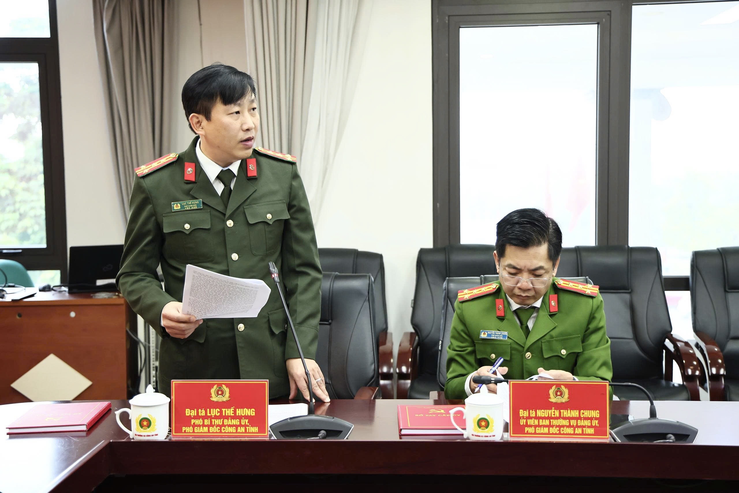 Phát biểu chỉ đạo hội nghị, đồng chí Bí thư Đảng uỷ, Giám đốc Công an tỉnh đề nghị các đơn vị cần nghiên cứu, tham mưu hoàn thiện Nghị quyết, cụ thể hoá Nghị quyết Đại hội đại biểu Đảng bộ Công an tỉnh Tuyên Quang lần thứ XIII và Chương trình hành động thực biện Nghị quyết, tạo tiền đề, nền móng vững chắc cho cả nhiệm kỳ 2025 - 2030; đổi mới tư duy, nâng cao tri thức, quyết tâm lãnh đạo thực hiện thắng lợi mục tiêu bảo đảm vững chắc an ninh quốc gia trong mọi tình huống, tạo chuyển biến thực chất về trật tự, an toàn xã hội, xây dựng xã hội trật tự, kỷ cương, an toàn, lành mạnh, phục vụ hiệu quả và tích cực tham gia thực hiện nhiệm vụ phát triển kinh tế, văn hóa, xã hội, mở rộng quan hệ đối ngoại của địa phương.