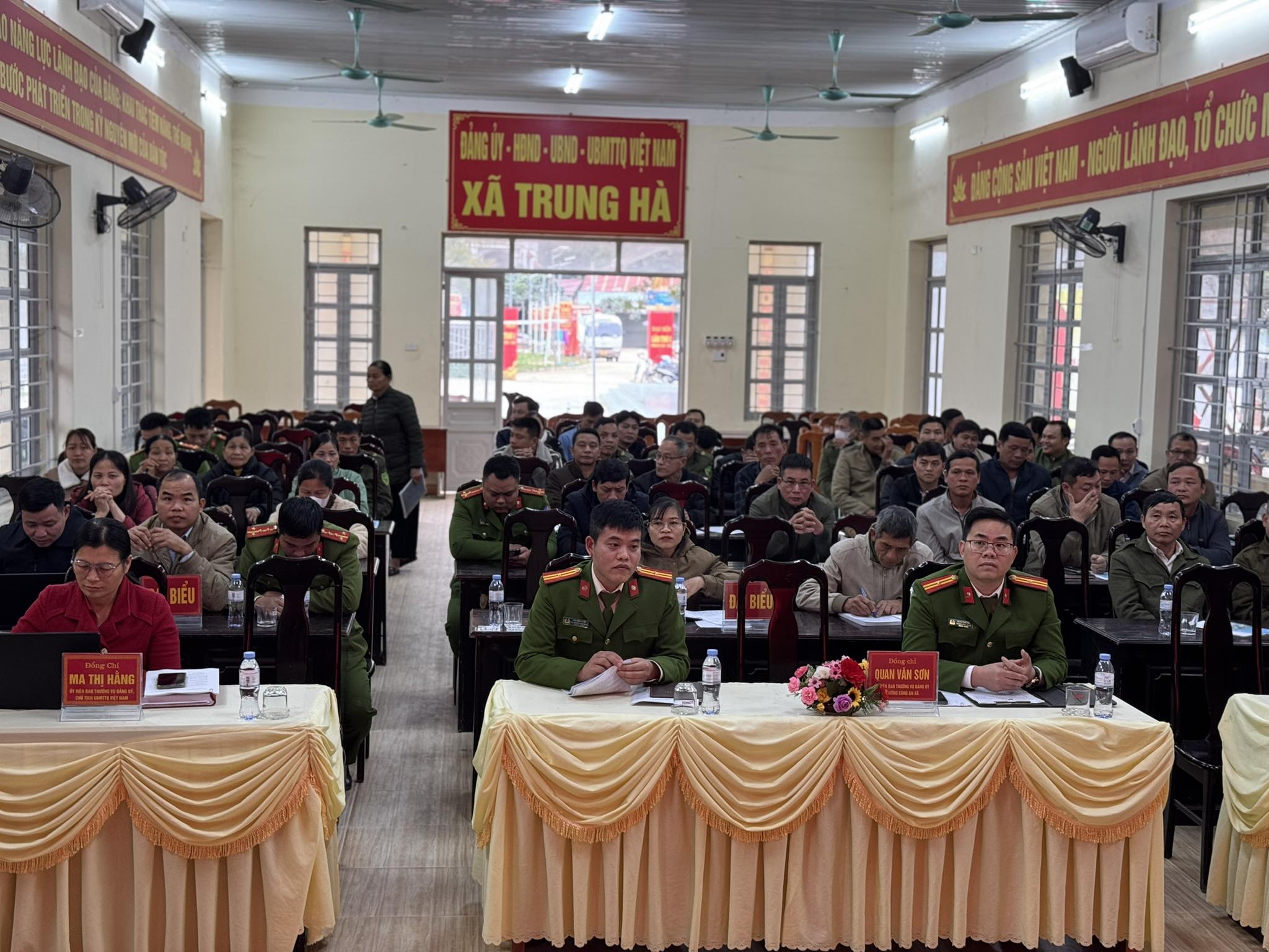 Tại hội nghị, báo cáo viên Công an xã Trung Hà đã tuyên truyền, phổ biến các văn bản chỉ đạo của Tỉnh ủy, UBND tỉnh về thực hiện kết luận số 132-KL/TW ngày 18/03/2025 của Bộ chính trị về tiếp tục thực hiện Chỉ thị số 36-CT/TW ngày 16/08/2019 của Bộ chính trị về tăng cường, nâng cao hiệu quả công tác phòng, chống và kiểm soát ma túy; những nội dung cơ bản của pháp luật về phòng, chống tội phạm; Luật Phòng, chống ma túy; các quy định xử lý đối với hành vi tàng trữ, mua bán, sử dụng trái phép chất ma túy; đồng thời phân tích rõ tác hại của ma túy đối với sức khỏe, kinh tế gia đình và trật tự, an toàn xã hội. Bên cạnh đó, hội nghị cũng thông tin về các phương thức, thủ đoạn hoạt động của các loại tội phạm, nhất là tội phạm ma túy trong tình hình hiện nay; hướng dẫn Nhân dân cách nhận biết, phòng ngừa và chủ động tố giác tội phạm.