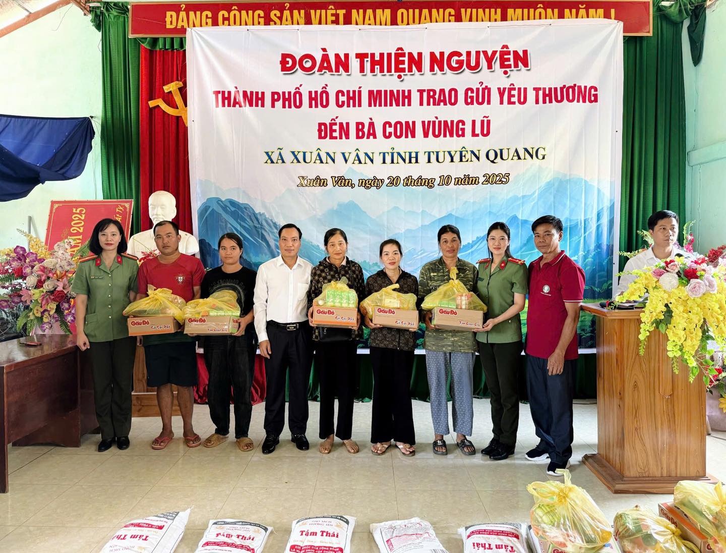 Phòng An ninh kinh tế Công an tỉnh vừa phối hợp với Đài khí tượng thuỷ văn tỉnh Tuyên Quang kêu gọi các mạnh thường quân cùng nhóm thiện nguyện thành phố Hồ Chí Minh tổ chức chương trình thăm hỏi, tặng 300 suất quà cho các gia đình có hoàn cảnh đặc biệt khó khăn bị thiệt hại nặng sau bão lũ trên địa bàn 02 xã Tân Long và Xuân Vân. Tổng trị giá các phần quà trên 120 triệu đồng. Qua đó, nhằm động viên các hộ dân sớm khắc phục khó khăn, ổn định cuộc sống sau thiên tai.
