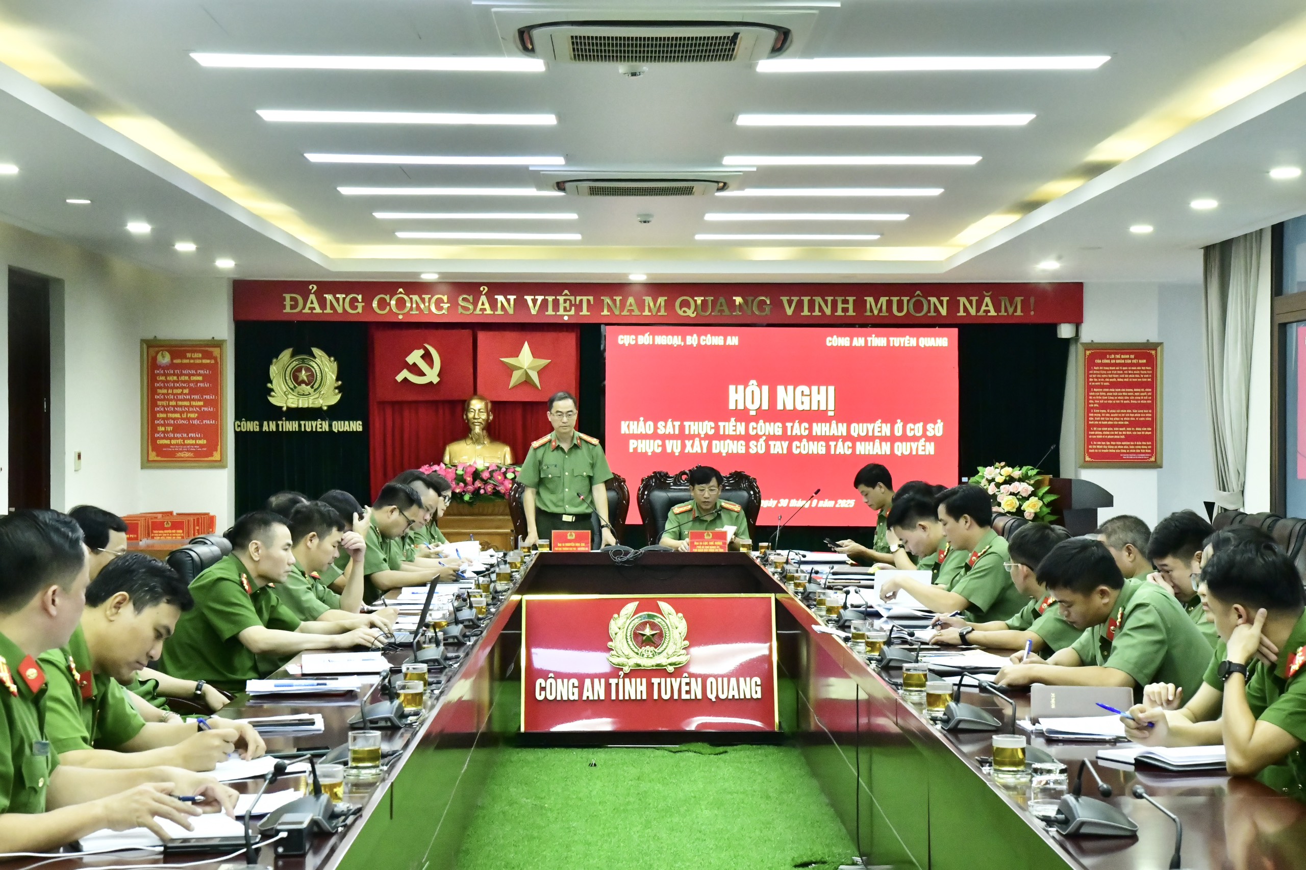 Phát biểu kết luận hội nghị, đồng chí Phó Cục trưởng Cục Đối ngoại ghi nhận, đánh giá cao những kết quả, cách làm hay của địa phương trong việc tham mưu, tổ chức thực hiện công tác bảo vệ, đấu tranh về nhân quyền trên địa bàn. Trên cơ sở các nội dung chia sẻ của Công an tỉnh, đồng chí Phó Cục trưởng chỉ đạo các đơn vị chức năng của Cục Đối ngoại tiếp tục phối hợp với Công an tỉnh Tuyên Quang xây dựng tài liệu bảo đảm chất lượng, có tính tham khảo, định hướng cao để phục vụ lực lượng Công an cấp xã trên cả nước nghiên cứu, tham khảo, vận dụng trong triển khai công tác bảo vệ, đấu tranh về nhân quyền tại địa phương.
