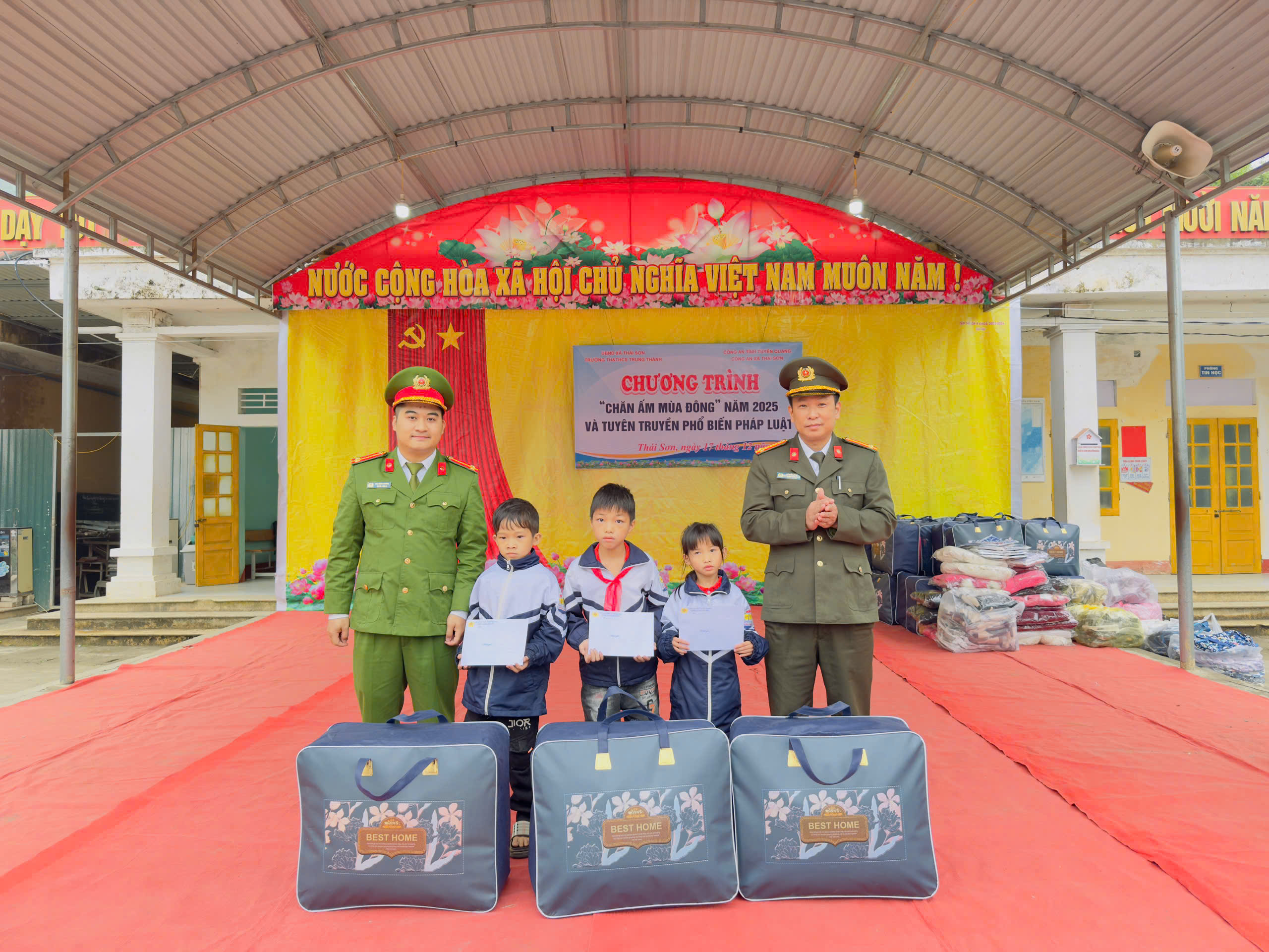 Tại Chương trình đã trao tặng 03 phần quà cho 03 em học sinh bị khuyết tật, 30 chiếc chăn ấm, 30 cặp sách và đồ dùng học tập, 80 chiếc áo ấm, 80 đôi dép cùng nhiều phần quà ý nghĩa gửi tặng các em học sinh ( tổng giá trị 75.000.000 đ). Tiếp đó, Chi đoàn Công an xã Thái Sơn đã tổ chức tuyên truyền, phổ biến giáo dục pháp luật cho các em học sinh với những nội dung gần gũi và thiết thực như: Phòng tránh bạo lực học đường, biết yêu thương, giúp đỡ bạn bè và ứng xử văn minh trong trường học; hướng dẫn tham gia giao thông an toàn, đội mũ bảo hiểm đúng quy định, đi đúng phần đường và chấp hành hiệu lệnh khi đến trường.