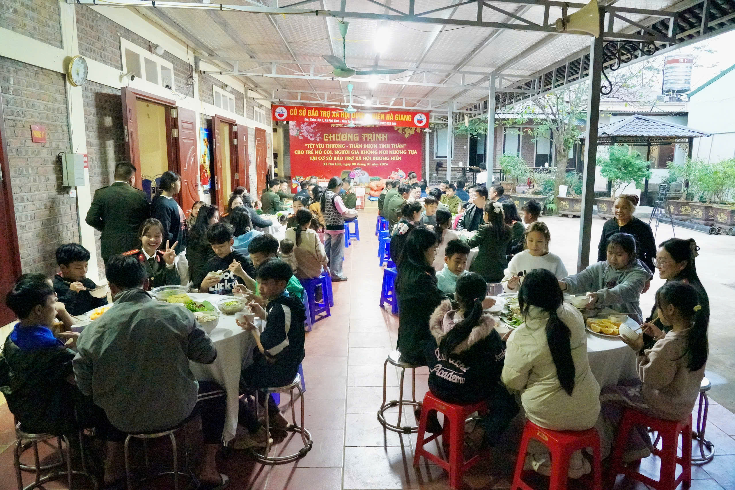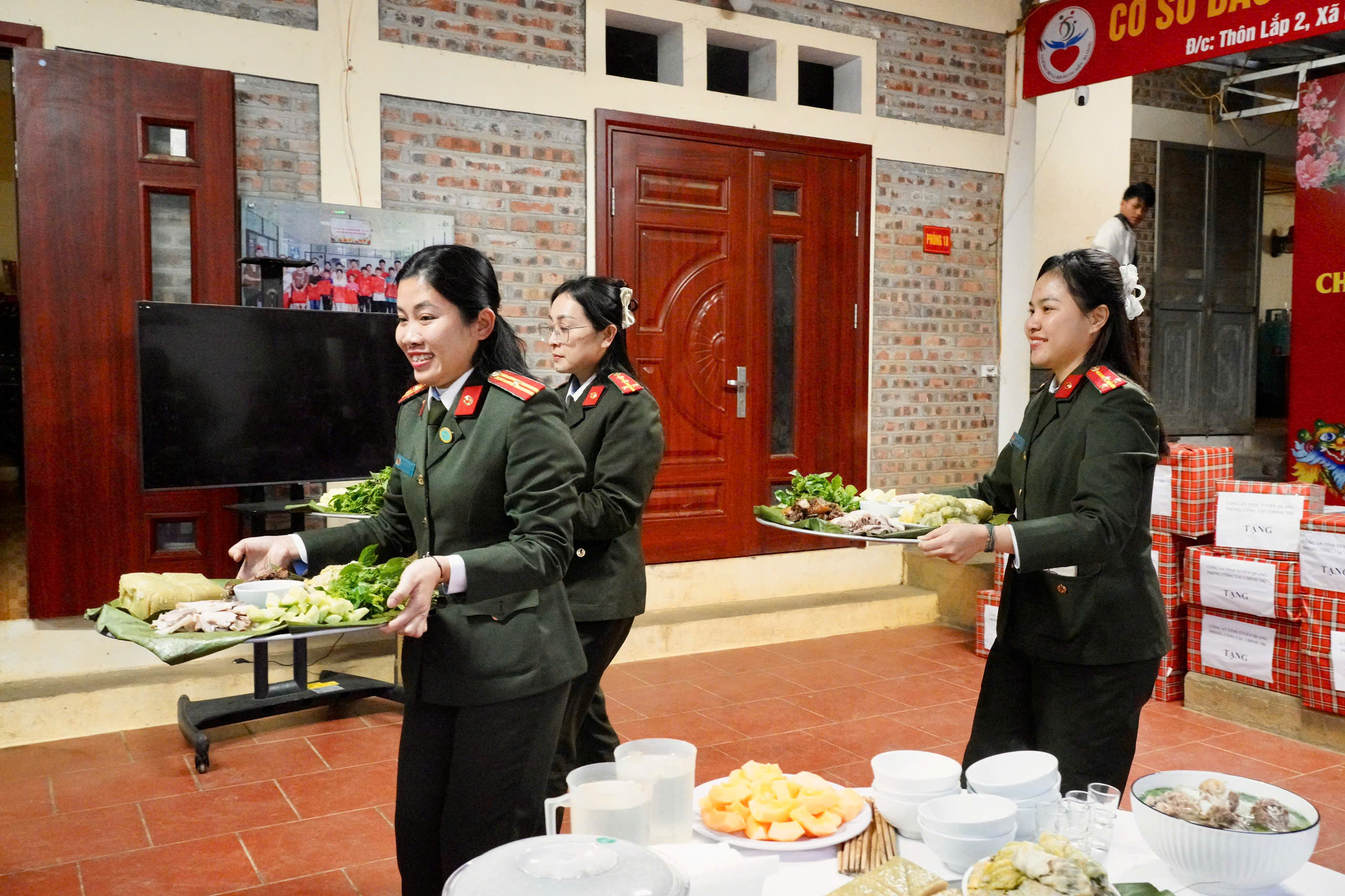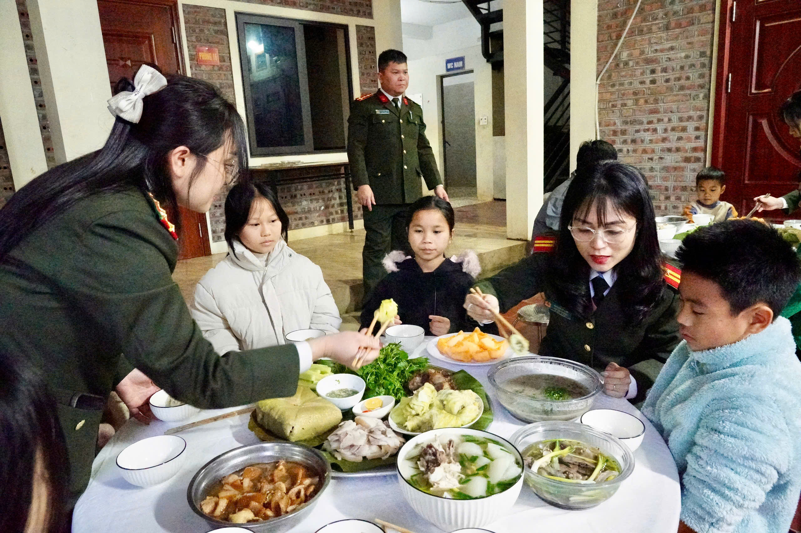 Bên cạnh hoạt động trao quà, cán bộ chiến sĩ phòng Công tác chính trị còn tổ chức chương trình “Cơm Tết yêu thương – Thắm đượm tình thân”, cùng dùng bữa, chia sẻ không khí đầm ấm, thân tình với trẻ em và người già đang được chăm sóc tại cơ sở, góp phần mang đến một cái Tết sớm, đủ đầy và ấm áp hơn.
