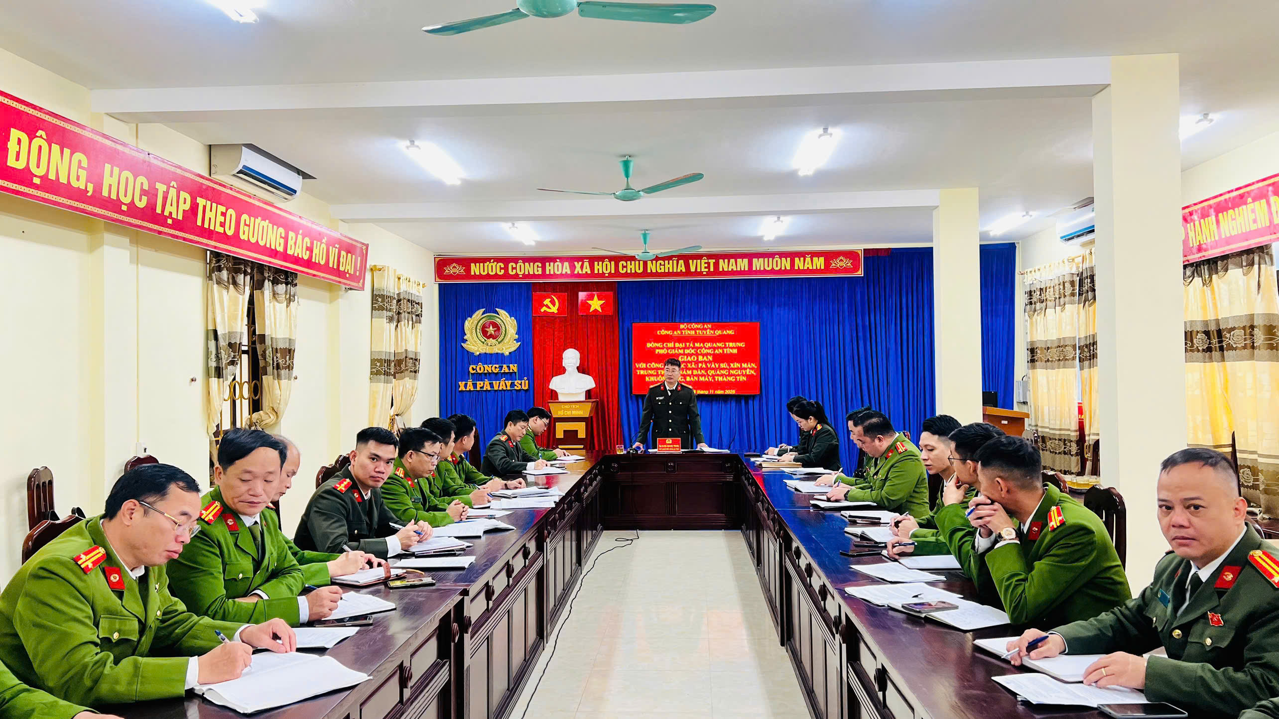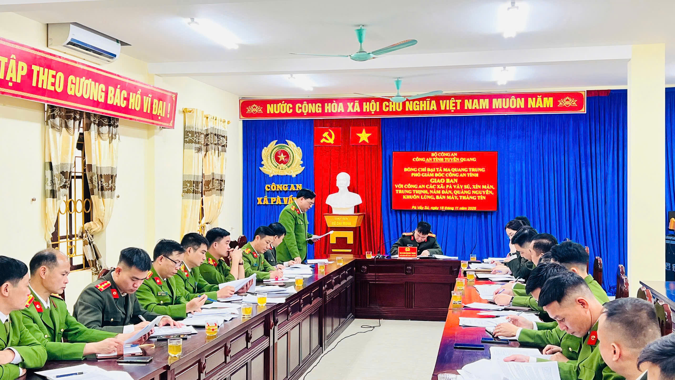 Tại buổi làm việc, đại diện Công an các xã đã báo cáo về tình hình an ninh, trật tự trên địa bàn; kết quả triển khai nhiệm vụ sau sáp nhập; đặc biệt là kết quả thực hiện các chỉ tiêu cao điểm phòng chống tội phạm; những khó khăn, vướng mắc trong công tác tổ chức, bố trí lực lượng, hậu cần, công tác bảo đảm an ninh trật tự ở cơ sở.